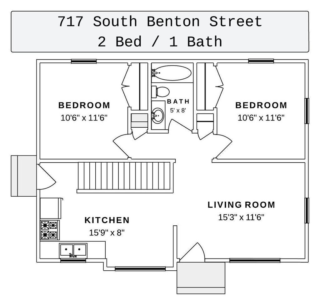 There is currently a 2 Bed 1 Bath Home for rent with 802 sq ft listed at 717 S Benton St. It is Available Now.