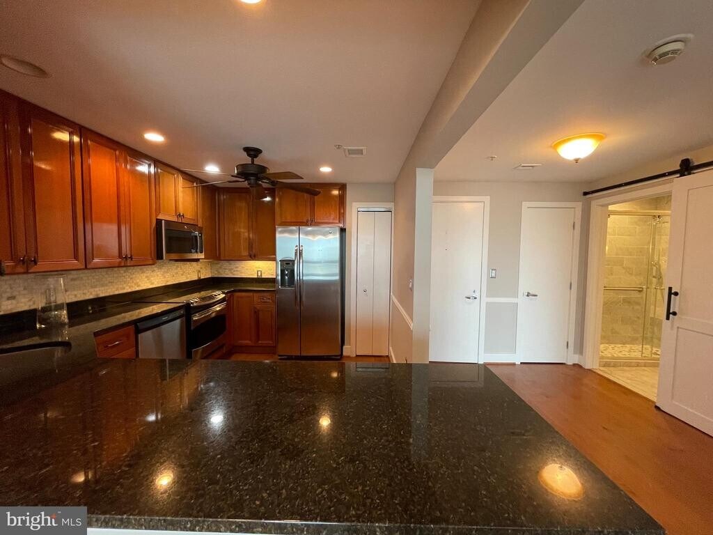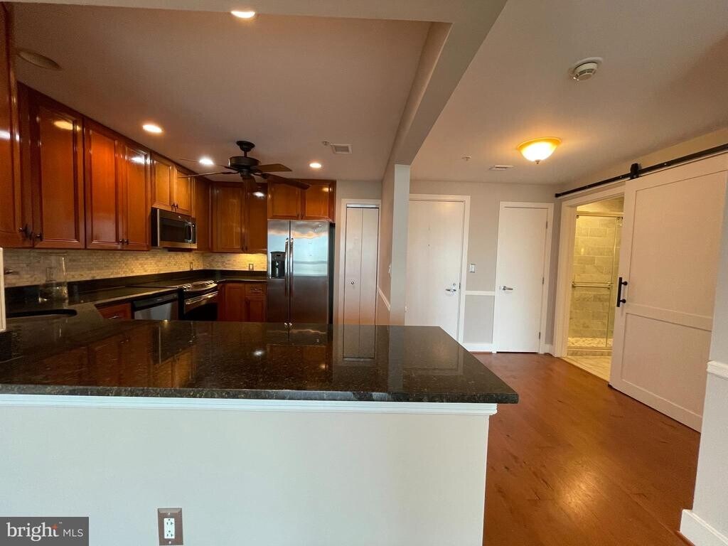 Welcome to The Residence at Dockside, Philadelphia's premier waterfront condominium that embodies the epitome of easy living. Introducing Unit 906, a designer-like, light-filled condo completely renovated in 2020. This exquisite unit includes 1-car garage parking, a private balcony with river views, and elegant hardwood floors throughout. Upon entering, you are greeted by an expansive foyer leading to a stunning chef’s kitchen. This kitchen is a culinary enthusiast's dream, featuring an expansive breakfast bar, 42-inch walnut cabinetry, Ubatuba granite countertops, a designer backsplash, undercounter lighting, handsome stainless-steel appliances, and a large pantry. The kitchen seamlessly flows into the generous living and dining room, which boasts beautiful wide plank hardwood floors, chair-rail surround, oversized floor-to-ceiling, wall-to-wall windows, and a door leading to a private, peaceful outdoor area with wonderful river views. Just down the hall, you’ll find a well-sized bedroom equipped with hardwood floors, a sliding door to a private balcony, and a huge walk-in closet with built-ins and extra storage area. The bedroom is complemented by a stunning spa bath, featuring beautiful barn doors, a frameless glass shower with marble surround and a sit-down bench, a sizeable quartz vanity, unit wall sconces, and a honed Carrara marble floor. The full bath also includes a closet with a washer and dryer. The Residence at Dockside offers a plethora of amenities, including 24/7 concierge service to ensure your needs are met at any hour, reserved owner and guest secured parking for peace of mind and convenience, an award-winning world-class clubroom featuring a 4,100 square-foot terrace with spectacular waterfront views, a state-of-the-art fitness center, a heated indoor swimming pool and hot tub perfect for relaxation and exercise, and a private minibus service for daily transportation to and from Center City. With easy access to all major highways and bridges, The Residence at Dockside offers a perfect blend of luxury and convenience. Schedule your appointment today to experience this exceptional living space!