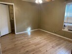 This spacious 3 bedroom with 2.5 bathroom home features a spacious living room with additional space for dining and a corner fireplace. The utility room offers ample shelving that can be used for pantry extra storage. The backyard includes a covered patio that provides shade and a pleasant outdoor area.