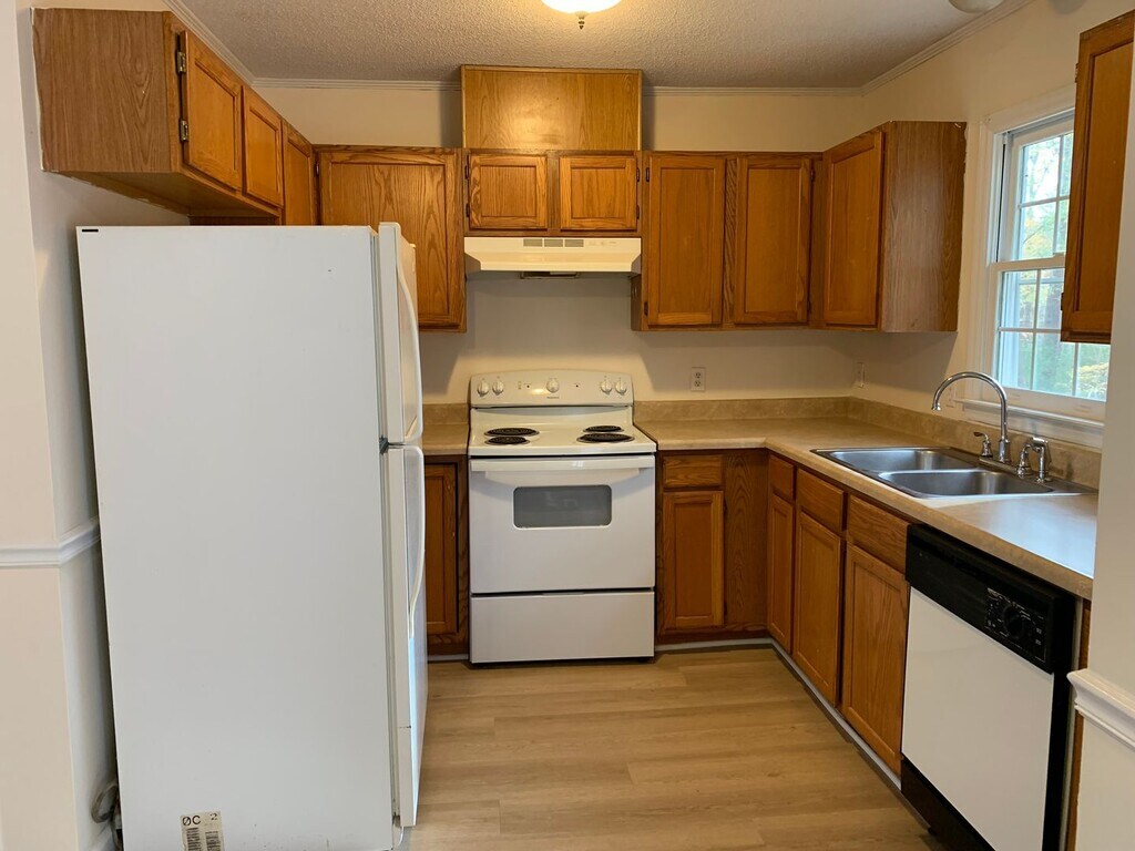 This 3 bedroom 2.5 bath home located in Wake Forest off Capital Blvd. has a downstairs master bedroom and full bath with easy to clean luxury vinyl plank flooring. The lower lever features 1/2 bath off kitchen, living room with wood burning fireplace & formal dining room with washer & dryer hook-ups. A fully equipped kitchen has stove, refrigerator, dishwasher and disposal as well as newer counter tops! Upstairs you will find two spacious bedrooms and a shared bathroom. Attic space is available for storage. Enjoy the deck to fenced yard off the dining room. Outside storage room. Resident to pay all utilities including gas, electric and water. Tenant must maintain all of the yard to include mowing, raking and trimming bushes as needed. Home Owner's Association rules & regulations apply but fees are included in rent! Enjoy the pool right down the street! Call or visit our web site at: for more information.