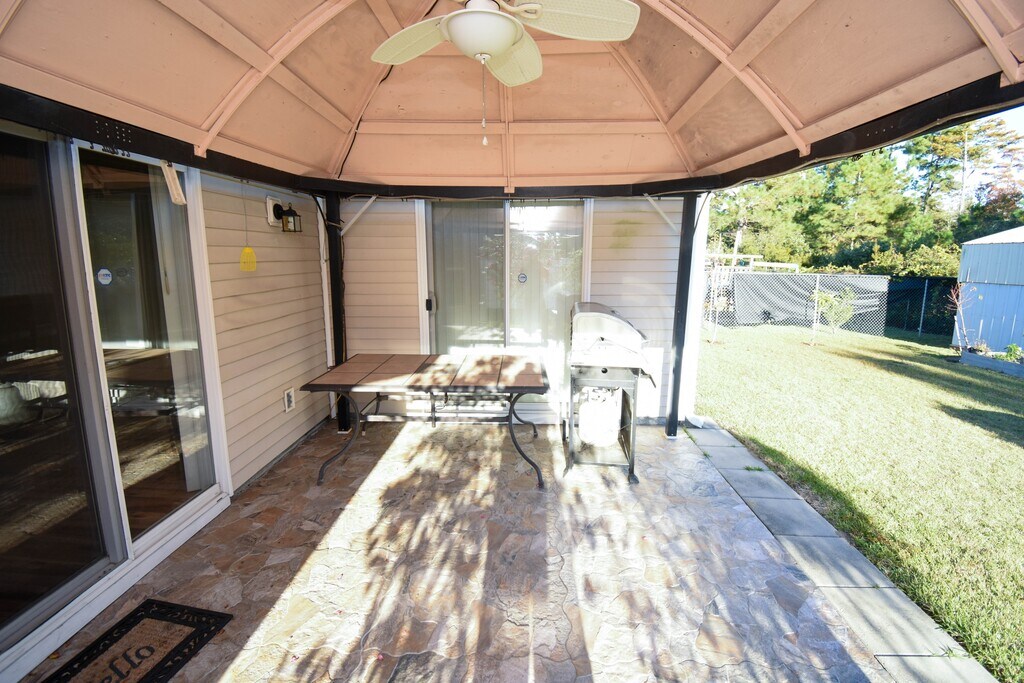 Looking for the perfect home with no HOA to deal with? This beautifully maintained property has everything you need! The kitchen includes a tiled backsplash along with a newer stove and microwave. Enjoy the spacious living room with vaulted ceilings and sliding glass doors that open to a large backyard—complete with a tiled patio and gazebo, perfect for relaxing or entertaining. The master suite offers a large walk-in closet and a private ensuite bathroom with a double vanity. The split floor plan provides privacy, with guest bedrooms and a second full bathroom on the opposite side of the home. Additional highlights include an expanded concrete driveway and sidewalk and a storage shed. It is also located in a highly desired school district. Come make this your next place to call home! Credit, Background, & Eviction Checks are required. Provable income of 2.5x the monthly rent is required. Tenant is required to carry renters insurance.