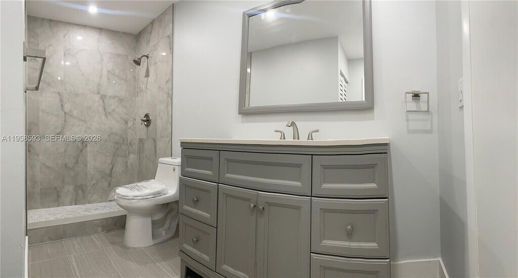 Completely Remolded floor to ceiling apartment with brand new fixtures, vanities, and stainless steel appliances. Spacious 1 bedroom with double closets, private bathroom with entrance from bedroom. Unit features full kitchen with dining room, living room, and outdoor balcony with nice views. Brand new washer and dryer in unit and central ac throughout. Settled in the beautiful community of Villa Bellini. Automatic gates, must dial in code for entry. 1 Assigned parking space. Utilities not included. Minutes away from shopping centers. MLS # A11958593