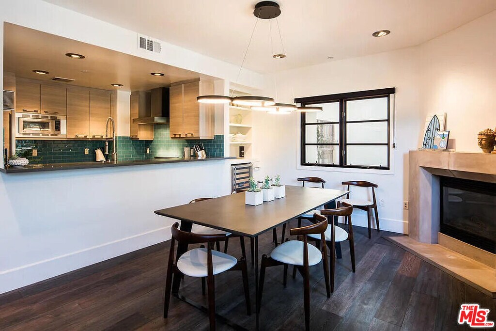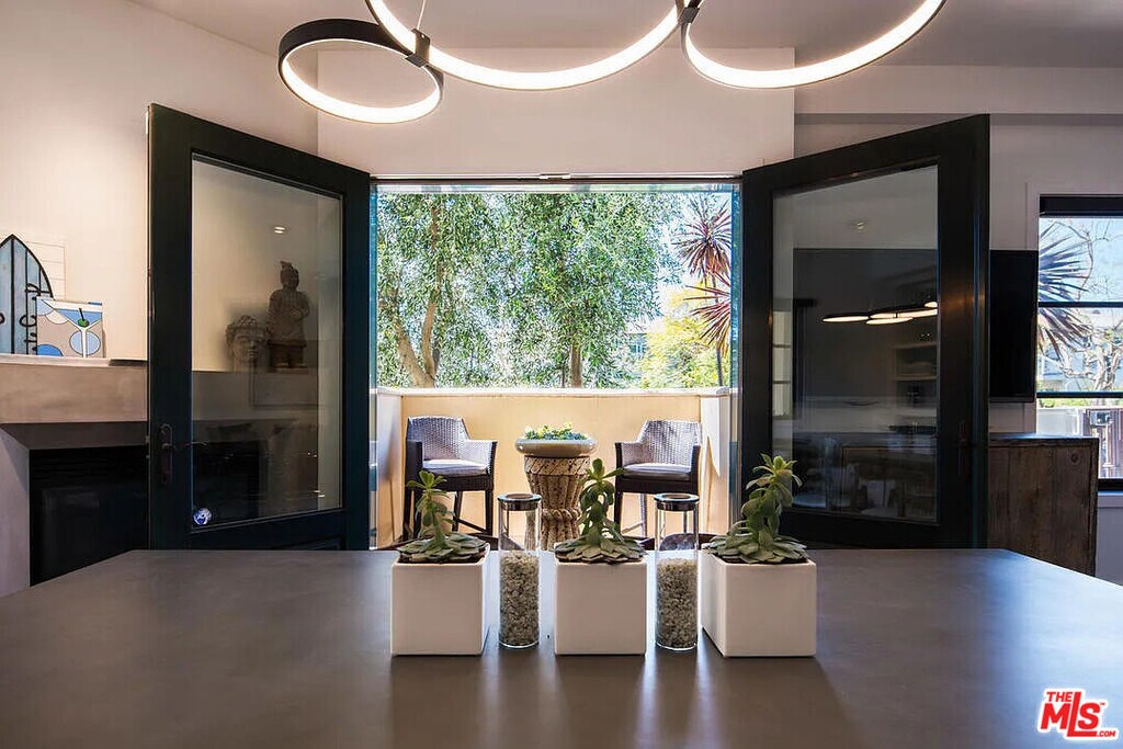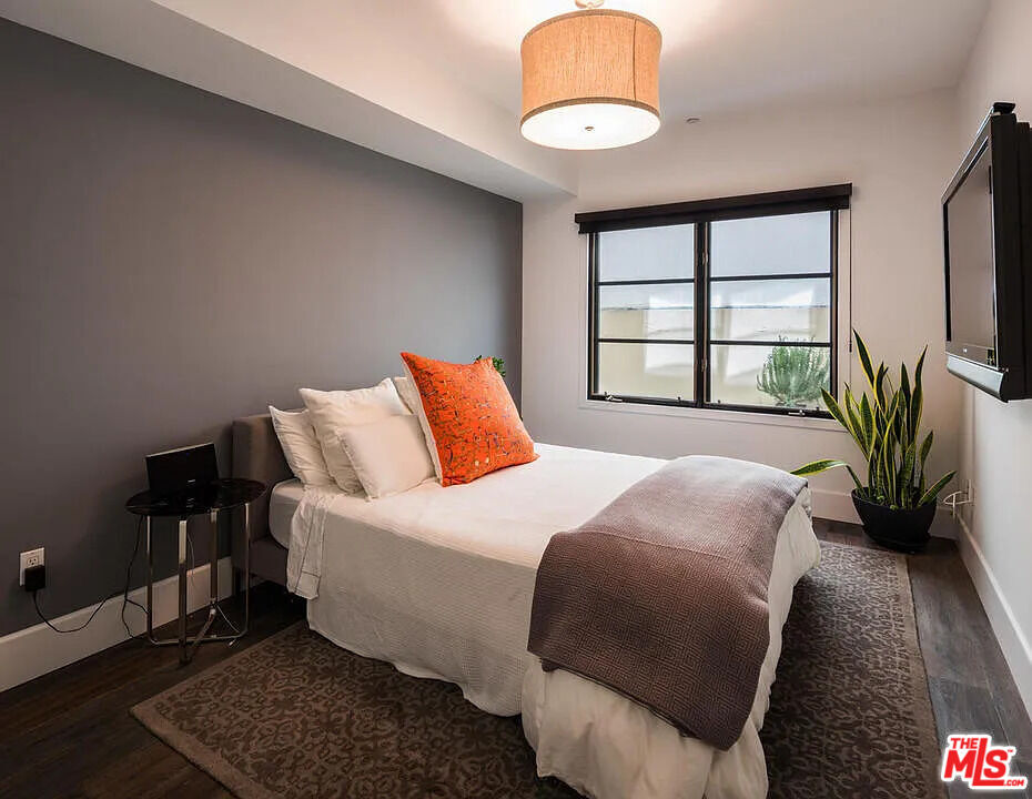 Contemporary 3-bedroom, 2.5-bath unit with designer finishes and upgrades throughout. Features an open-concept kitchen, living, and dining area with a fireplace, plus a large private patio. Includes extra storage, secured parking with guest parking, and a sun deck with city and mountain views. Centrally located in West Hollywood. MLS# 25592425