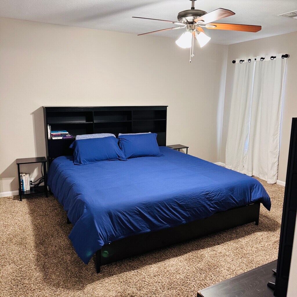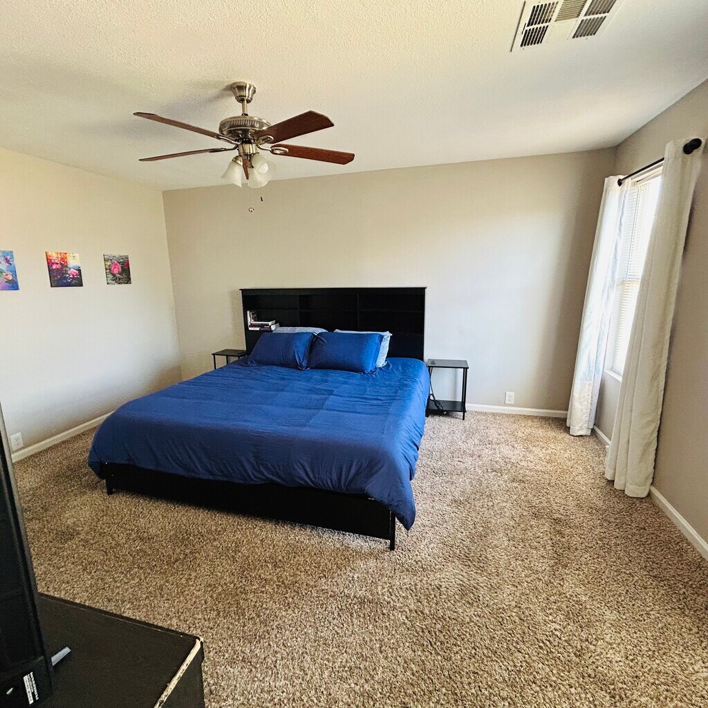 **ALL Utilities Included** **FULLY Furnished Rental** **Leases Available for 1, 3, 6, 12+ months** Peaceful & simple full-home rental less than 15 minutes from IAH airport, 25 minutes to downtown Houston, work from home setup and amenities. Enjoy a huge backyard, smart TV's, fast WiFi, and a full work-from-home setup. Cook with a full kitchen (air fryer, juicer, Keurig, toaster oven, microwave and fridge). Stay a while with a brand-new washer/dryer, modern furnishings, books to enjoy, plenty of storage, huge living room, spacious dining areas and sleep up to 6 guests! Please submit the form on this page or text/call Christopher with Plenty Properties LLC at to learn more. 3 bedrooms (large primary bedroom and 2 guest bedrooms - all bedrooms upstairs), 2.5 bathrooms, 1,800+ sq ft. Huge backyard, full kitchen, dining & breakfast areas, smart TVs, washer/dryer, fast WiFi, office setup. Sleeps up to 6. Full private access with easy keyless entry. Use all bedrooms, living & dining spaces, backyard, kitchen, washer/dryer, and work from home setup with nice work desk (also the ability to make it a standing desk!) Coffee in the kitchen & toiletries in the bathrooms provided. On your downtime enjoy business, self-development & spiritual books from our collection. Peaceful, spacious, and ideal for families, entrepreneurs and travelers seeking simplicity & comfort. Please submit the form on this page or text/call Christopher with Plenty Properties LLC at to learn more.