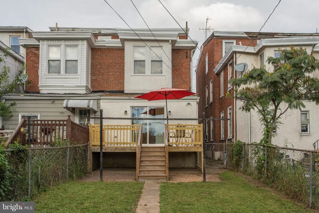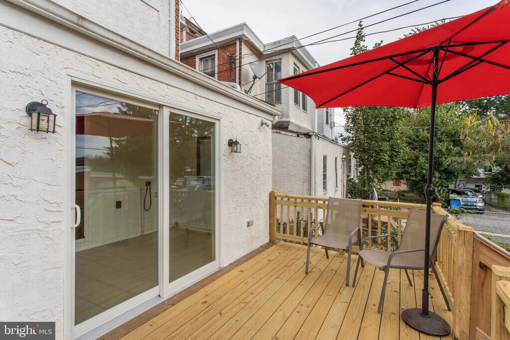 Welcome to this well maintained, spacious, and freshly painted 5-bedroom & 3-story semi-detached brick twin featuring high ceilings and bright large replacement windows. Enter through the lovely front porch to the main level where you will find a spacious newly carpeted living room, dining area along with an eat-in kitchen, and a bright sunroom with in unit laundry and 1/2 bathroom. recently upgraded kitchen with a pantry closet offering ample space. An exit through a sliding glass door leads you into a newly built private deck and a fenced in rear yard for entertaining. The second floor offers 3 bedrooms of considerable size, a full bathroom, and freshly laid carpet floors throughout. The top level consists of 2 more sizable bedrooms with generous storage space closets and wood floors. Completing this lovely home is a huge basement with concrete flooring