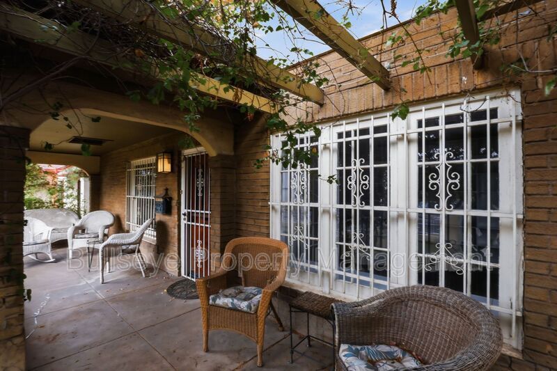Historic bungalow in Central Phoenix packed with character — hardwood floors, arched doorways, vintage pendant lighting, and a bright formal dining room with French door access. The kitchen features white cabinetry and a classic green tile backsplash. Both bathrooms are well-appointed with period details. Bonus flex room, in-unit laundry, and tankless water heater add modern convenience. Outside, a massive wood-beam pergola with string lights creates an entertainer's dream over a large concrete patio, complemented by a lush green lawn, mature shade trees, and a detached outbuilding. Minutes from downtown Phoenix. 360 virtual tour here: Terms: Renters Insurance required Total Monthly: $2,570 (rent+resident benefit package processing fee) $45 application fee $70 monthly resident benefit package processing fee (includes bimonthly hvac filter install) $300 move-in admin fee Pets call first Owner will cover landscaping for an extra $200 per month option Equal housing provider