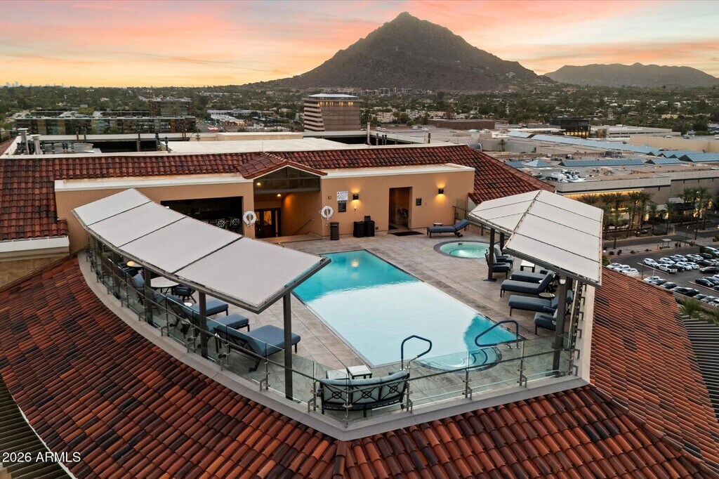 Welcome to the crown jewel of Scottsdale Waterfront Residencesâ''an exceptional,sought-after end-corner unit on the 5th floor. This beautifully updated,impeccably maintained home features 2 spacious bedrooms,a den,and 2.5 bathrooms with a desirable split floor plan. An open-concept layout fills the space with natural light from expansive windows and the private back balcony,both overlooking the Scottsdale Waterfront and city lights. The chef's kitchen flows effortlessly into a refined dining area and great room architecturally highlighted by exposed wood beam ceilings and a sleek gas fireplace. Fully integrated smart home technology allows seamless control of lighting,music,electric sun shades,temperature,and ambiance throughout. Retreat to the luxurious primary suite,featuring a brand new custom closet system,dual vanities,separate soaking tub and walk-in shower,plus direct access to the private balcony. Residents enjoy world-class amenities,including valet parking,24-hour concierge service,a rooftop pool,fitness center,spa services,a stylish resident club room,and more. All located just steps from fine dining,upscale shopping,and renowned art galleriesright in the heart of Old Town Scottsdale. This residence is also listed for sale.