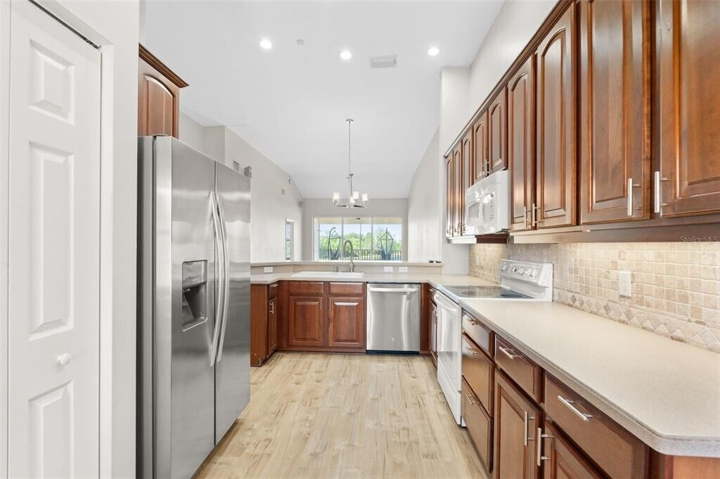 Welcome to 7187 Boca Grove Pl Unit 201! Lovely Golf Course view Lakewood Ranch Condo in gated community. This is a 2nd Floor End Unit 2 bedroom / 2 bath plus Den with Ceramic Tile flooring and Plantation Shutters throughout except for the vertical blinds over the lanai sliding doors.. It also comes with a 1 car garage! The view is of The Legacy Golf Course #6 green and fairway across the lake and the 7th tee. Step into the entry foyer. The guest bedroom,bathroom and laundry room is to your left separated from the foyer with a pocket door that can make it a private guest suite when closed. Just past the Guest area is a Den with French Doors. Could be used for extra sleeping area for guest,or use it as an office space. On the right side of the Foyer is the eat - in dinette attached to the Kitchen with wrap around breakfast bar. This unit is located just 5 minutes from UTC Mall & Waterside in Lakewood Ranch. MLS# A4674975