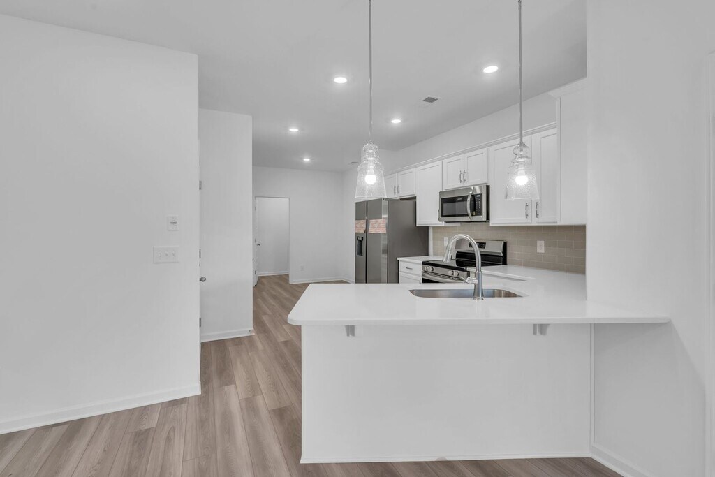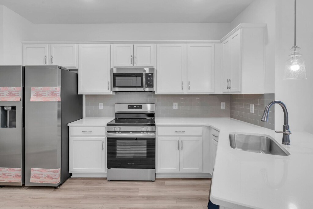 Apply now: LEASING SPECIAL: $100 off monthly rent for 18 month lease! This freshly built townhome features an open-concept main floor with bright natural light, new laminate flooring, and a sleek kitchen with white cabinets, stainless steel appliances, quartz-style countertops, and a large peninsula. Upstairs offers spacious bedrooms, updated baths, and a tiled walk-in shower. Enjoy low-maintenance living with a private garage, rear driveway, and welcoming front entry. Move-in ready and located in a growing, convenient community—schedule your tour today! Summary: Security Deposit: One Month's Rent due at lease signing $75 Non-Refundable Application Fee Per Applicant $15/Month Admin Fee $25 per month Non-Refundable Per Pet Fee (Approval at Owner's Discretion) Utilities: Tenant Responsibility Washer & Dryer Connections