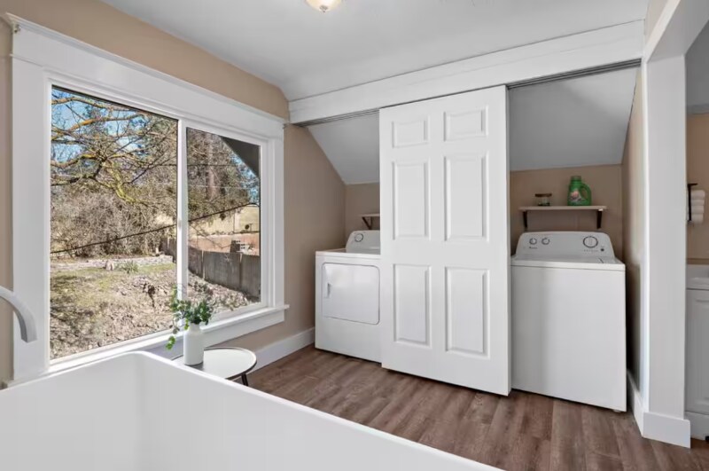Property Id: 2224582 Step into History and Comfort in Spokane! Looking for a quiet, clean, and well-managed place to stay? This home is ideal for travel nurses, interns, students, and contract workers. Each private room includes: • Queen bed w/ mattress protector (bring linens) • Blackout curtains + blinds • Built-in closet + chest of drawers • Digital keypad lock Shared amenities: • 2 full bathrooms • Full Kitchen • Washer/dryer set • Dining area with TV • Foosball game area • Patio with fire pit Security cameras • (exterior/common) All utilities included: • WiFi, electricity, water, trash + monthly cleaning of shared areas. We maintain a quiet, respectful environment — ideal for professionals who care about cleanliness and privacy.