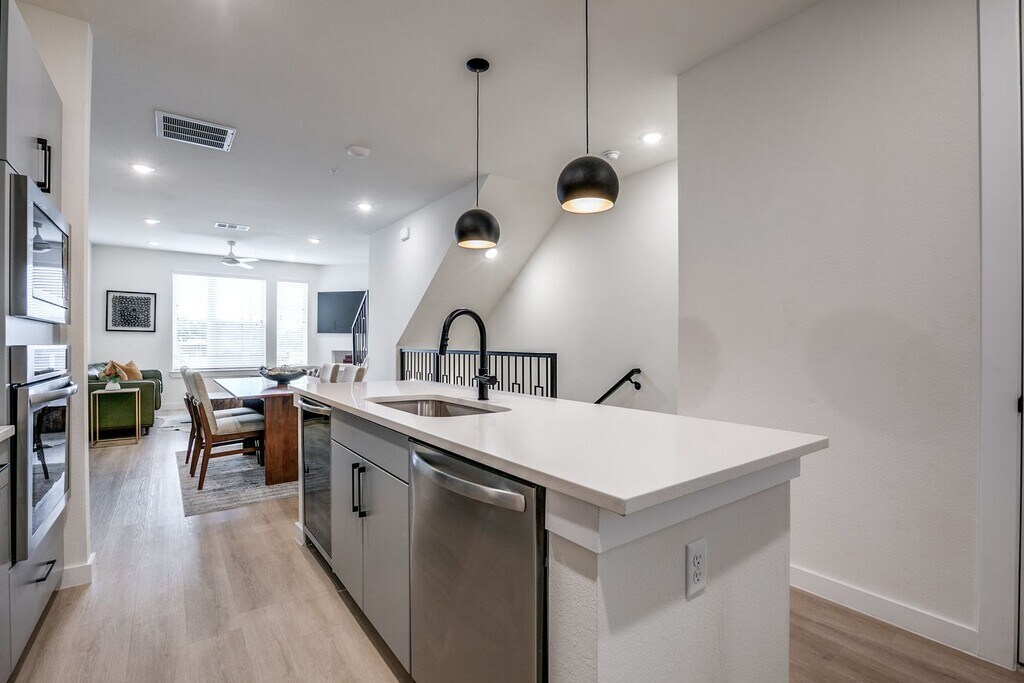 Immaculate, Luxury Townhouse at Grayson House, Walking Distance to The Pearl, Shopping & Restaurants, & Vibrant New Developments! Enjoy Lock & Leave Lifestyle in the Small, New-Construction Community with Handsome Exterior Styling & Countless High-End Features & Finishes. Gated Courtyard with Low-Maintenance Landscaping Leads to Covered Front Entry. Ground Level has Entry Room that Easily Serves as Home Office, Exercise, or Media Space. 2nd, Primary Level Features Huge, Open-Concept Kitchen & Living Space with Fantastic Natural Light, Luxury Wood-Vinyl Flooring, Upgraded Fixtures, & Neutral Paint Colors. Gourmet Island Kitchen with Custom Cabinetry, Quartz Countertops & Island, Stainless Steel Appliances & Gas Cooking, & Adjacent Half-Bathroom. All Bedrooms Located on 3rd Level, Spacious Primary Suite with High Ceilings & Balcony Access with Fantastic Views. Well-Appointed Primary Bath with Dual Vanities, Walk-In Shower with Beautiful Tile Work, Separate Tub, & Large Walk-In Closet. Nicely-Sized Secondary Bedrooms & Full Bathroom with Dual Vanities & Walk-In Shower. Laundry Room Located on 3rd Floor with Washer/Dryer Included. 2-Car Attached Garage with Opener. Pets Case-by-Case, Subject to Landlord Approval. San Antonio ISD.