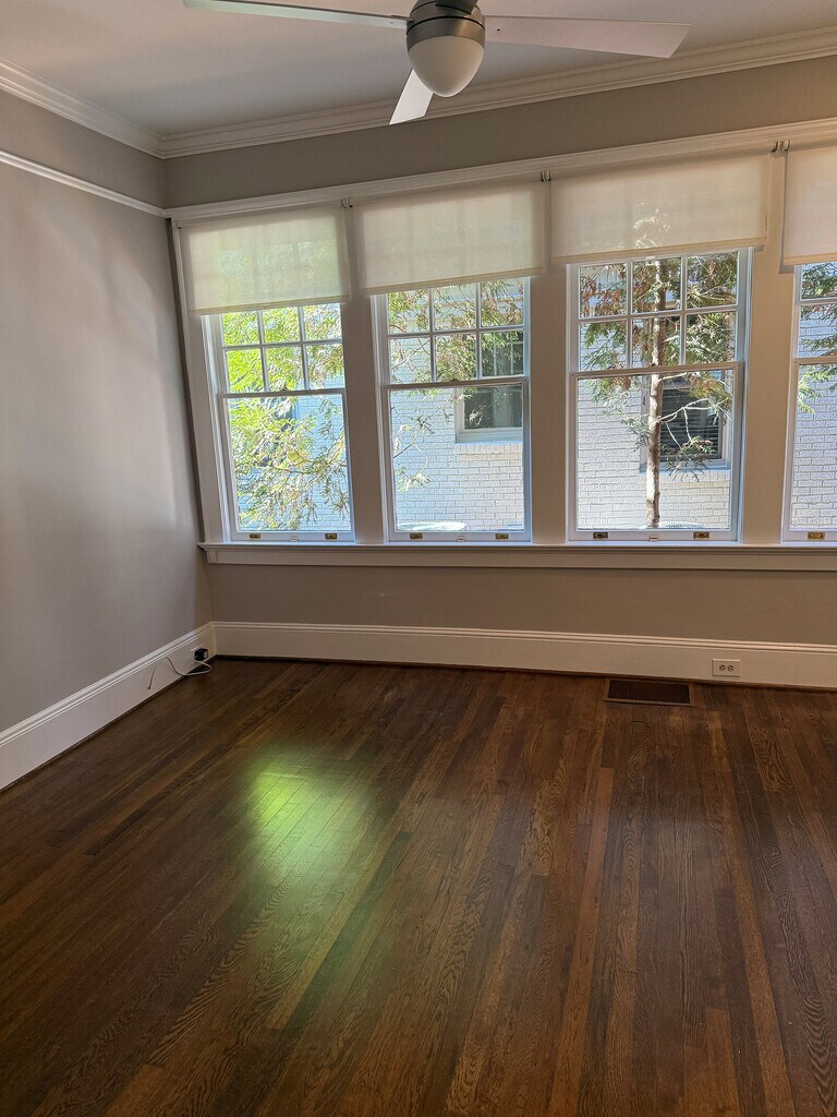 Great brick home in a prime intown location, tucked away on a quiet street directly across from Orme Park and just minutes from Piedmont Park and the shops, dining, and nightlife of Virginia-Highland. The home is bright and airy, featuring gracious public rooms, a center hallway, and an easy, functional flow for everyday living. The kitchen opens to a breakfast room, while the living room flows seamlessly into a sunroom ideal as a home office, reading nook, or additional living space. Upstairs offers two spacious bedrooms plus a flexible bonus room, with the potential for a fifth bedroom depending on layout needs. Enjoy a flat, walk-out backyard and a detached three-car garage/workshop with a mechanic's lift, along with additional space suitable for a gym or studio an uncommon setup ideal for today's work-from-home or hobby-focused tenant. The basement also provides ample dry storage. A rare opportunity to lease a well-located, character-filled home with park views, outdoor space, and exceptional garage flexibility in one of Atlanta's most desirable neighborhoods.