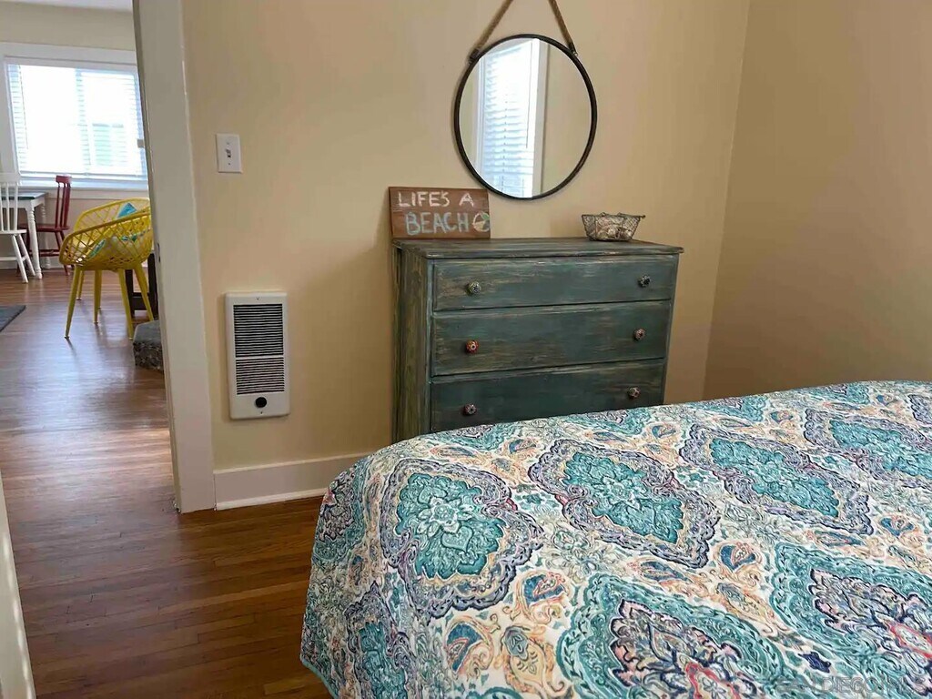 Available for short term rental. Listed rate is monthly Sept thru May: We also offer a 3 night minimum Sept thru May and 1 week in the summer season Sat to Sat. Can also be rented with adjacent 4 bedroom property to accommodate a total of 16 guests. Adorable 2 bedroom 1 bath with loft area furnished beach condo. 2 queen beds. 15 steps to the ocean front and 3 minute walk to the Bayfront. Cozy and cute. hardwood flooring and upper roof deck with a view of the ocean! STAYCATION and just steps to the beach! MLS# 230005571
