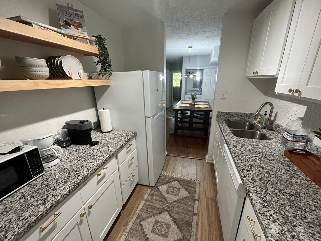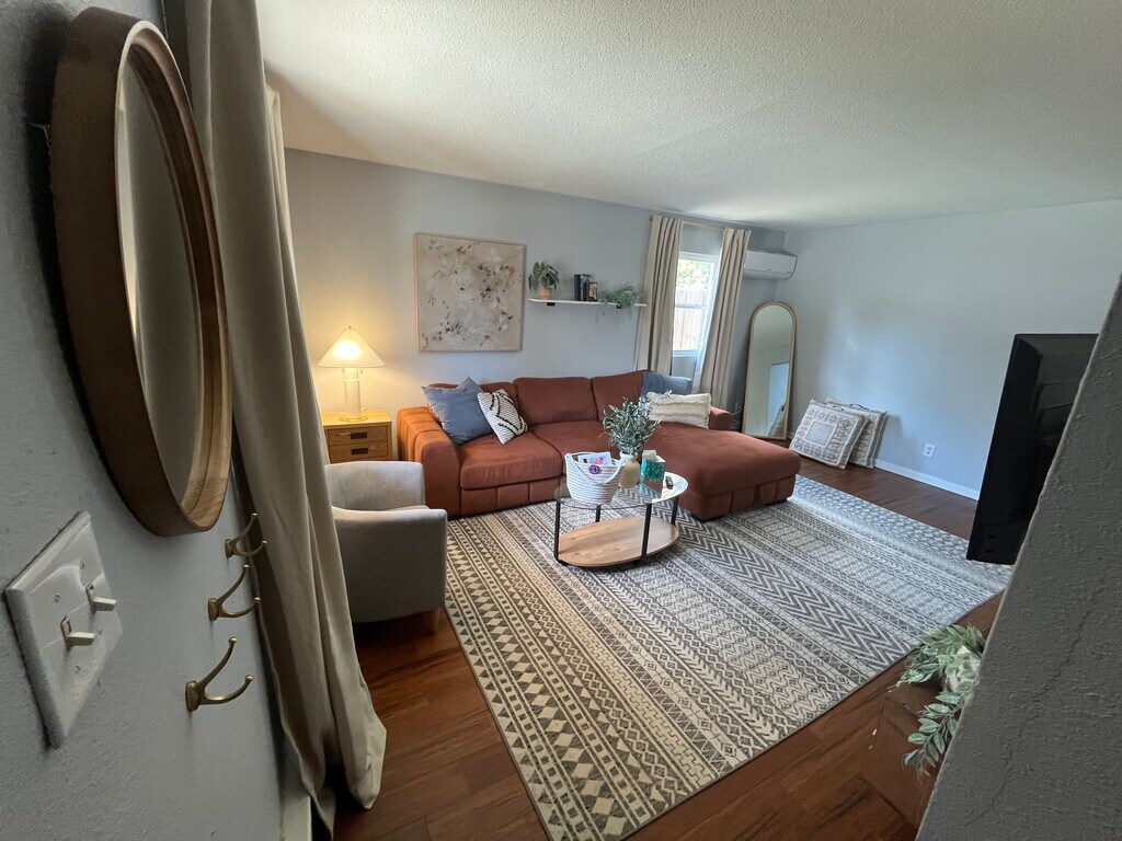 Room for rent: This apartment is in the most desirable location! Literally a 3 min walk to Hi Wire Brewery, Cugino Forno Pizza, Two Rooster's ice cream, art, Yaya Boba Tea, Dogstar Tattoo, Moshi Moshi Hair Salon, EV charging stations. The apt features spacious bedrooms (w/WIC), a large galley kitchen with granite counters, new appliances, & a LARGE living room. The owners will be installing a gorgeous patio with pergola, outdoor seating, outdoor dining, and a grill/fire pit next Spring! The space -Primary Bedroom offers a King Size Bed -Second Bedroom offers a Queen Size Bed -Pull-Out Sofa in Living Room Guest access -Smart Technology Entry Other things to note -Personal Parking Space for Unit *Bedroom furnishing removable at tenant request Note: Do not visit this property without first contacting us to schedule a tour at the number below.