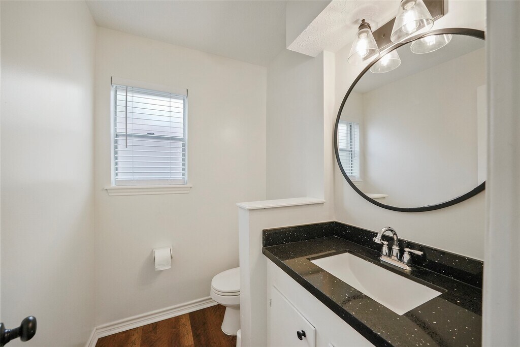 Remodeled 4 Bedroom home with large office and open floor plan. Roof replaced after pictures. Luxury wood tone vinyl flooring throughout the home provide warmth and charm. Large master with dual closets and double sinks. Quartz counters throughout with gas cook top in kitchen. Master shower updated with new tile. Located in Shenandoah near the front of the Woodlands with easy access to 45,restaurants and shopping. MLS# 26414863