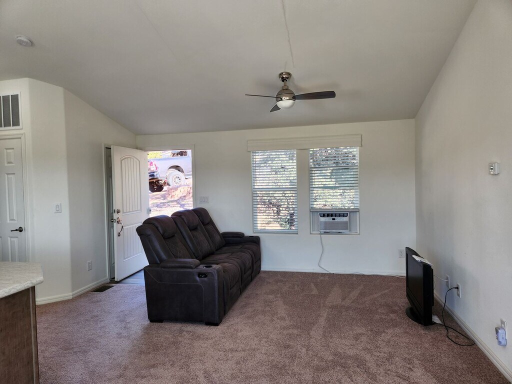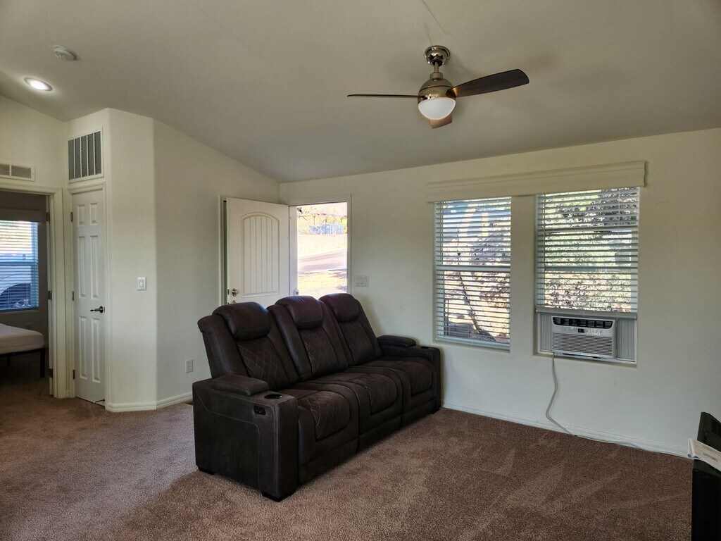 This adorable 2 bed / 2 bath [dual master bedroom] home is a newly built home. Updated look with ceiling fans throughout, open living/dining/kitchen area with split primary bedrooms on either side offers privacy in this cozy cottage. Kitchen has all new stainless steel appliances, recessed lighting, and beautiful vinyl plank flooring. Living room and bedrooms are bright and welcoming with plush carpeting, ceiling fans, and an additional window AC unit. Both bedrooms are generous in size, with full size closets and private bathrooms.