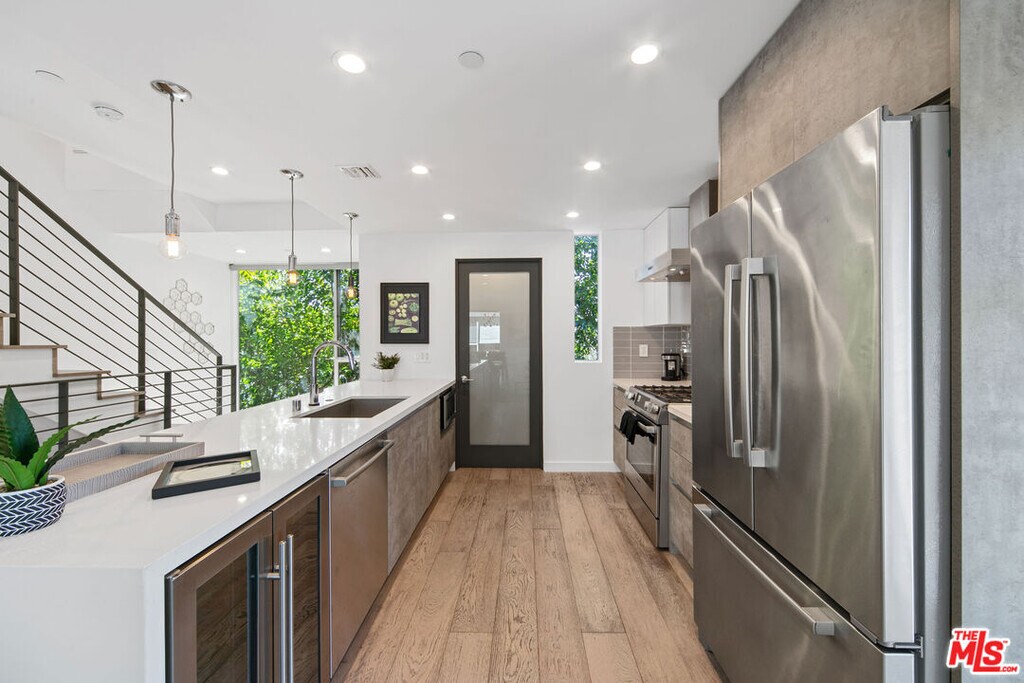 Indulge in the epitome of luxury living within this flawlessly crafted 3-bedroom, 4-bathroom sanctuary. A private two-car garage awaits, offering ample space for storage or the creation of a personal gym, complete with an electric car charging hook-up. Seamlessly transition to the lower level office or potential third bedroom, boasting its private bathroom and balcony. Ascend to the second level and be embraced by an expansive living area, illuminated by natural light pouring in through towering windows. A convenient powder room awaits guests, flowing effortlessly into the sleek chef's kitchen adorned with stainless steel appliances and a walk-in pantry. Bask in sunlight on the sun-drenched balcony, featuring a charming barbecue area. The third level unveils the pinnacle of relaxation in the exquisite main bedroom with ensuite bathrooms and a spacious walk-in closet. Adjacent, an additional bedroom awaits with its dedicated bathroom, ensuring the utmost comfort for visitors. Conveniently located on this level, a washer and dryer offer added convenience. Beyond its elegant architectural design, this newer construction boasts meticulous craftsmanship and modern amenities, promising a maintenance-free urban lifestyle perfectly tailored for the dynamic city dweller. Nestled in the heart of West Hollywood, just moments from the city's premier attractions, dining, and shopping, this property stands as a true gem, a must-see for those in pursuit of luxury living at its finest. MLS# 26672059