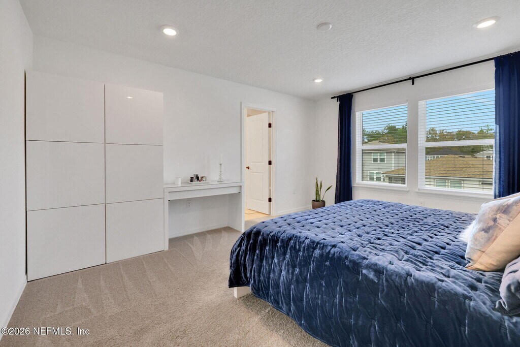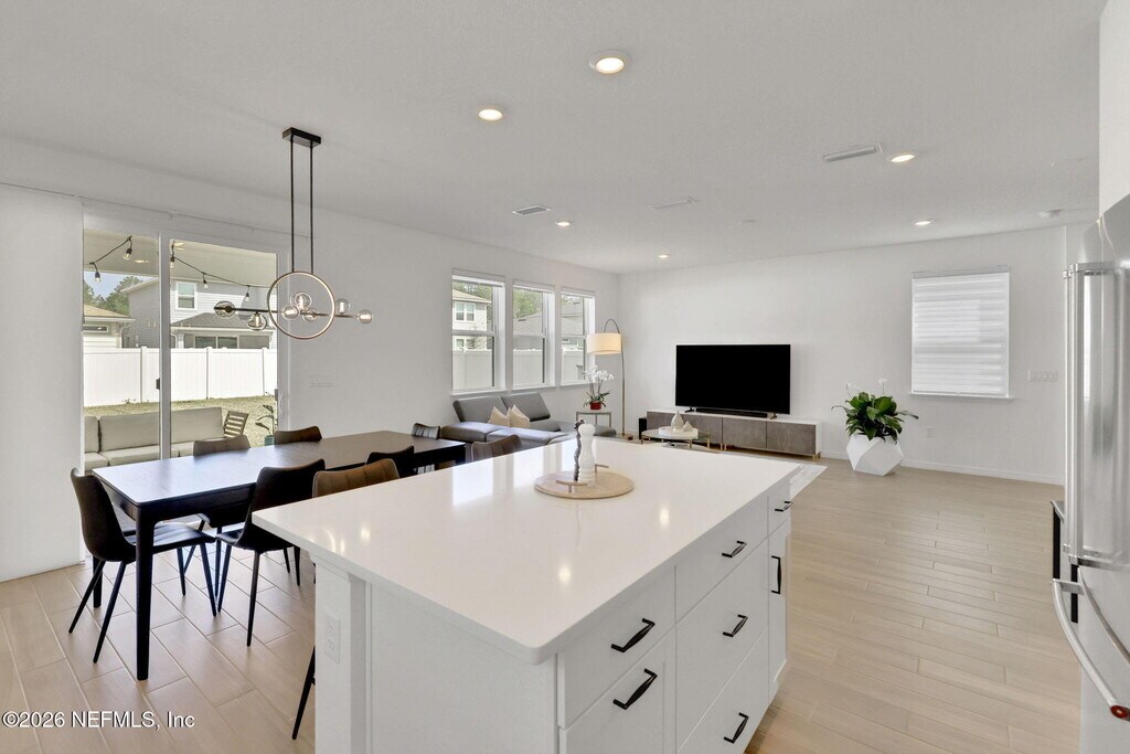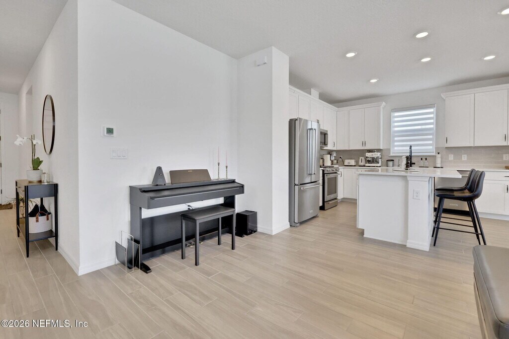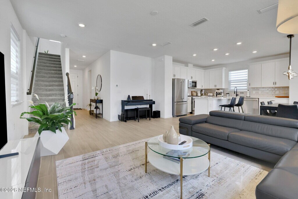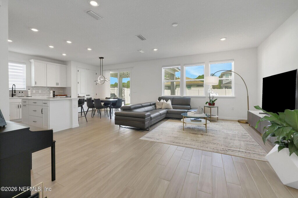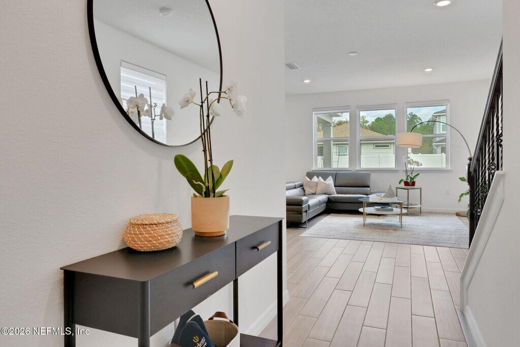 Welcome to this like-new home in the sought-after Preserve at Bannon Lakes community. Built in 2024,this two-story residence offers 2096 square feet of bright,open-concept living with 4 bedrooms,3 full bathrooms,an upstairs loft,and a 2-car garage. The gourmet kitchen features white shaker cabinets with matte black hardware,quartz countertops,a large center island with barstool seating,stainless-steel appliances including refrigerator,a gas range,and a flow gray subway tile backsplash. The home has a water softener system for the whole house and a reverse osmosis water filter for drinking water,located under the sink. The main level flows seamlessly from the kitchen into the dining area and spacious gathering room,all flooded with natural light from oversized windows and sliding glass doors leading to the covered lanai with string lights and a gas line stub -- ideal for grilling and outdoor entertaining. A first-floor flex room offers the perfect home office or guest space. Windows treatments will stay with the house. This home also features Ikea custom closets. Upstairs,the spacious owner's suite features a large walk-in closet and a spa-inspired en suite with a dual-sink vanity,quartz counters,and a walk-in tile shower with matte black fixtures and a built-in bench. Two additional bedrooms share a well-appointed hall bath,and the upstairs loft provides flexible bonus living space. The fully fenced backyard offers complete privacy with a vinyl privacy fence and plenty of room to enjoy. Residents have access to outstanding community amenities including a 4,000 sq. ft. amenity center,resort-style pool,fitness center,tennis and pickleball courts,playground,walking trails,and two dog parks. Zoned for Mill Creek Academy (K-8) and Tocoi Creek High School. MLS# 2135973