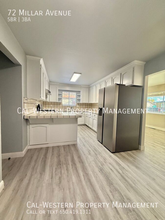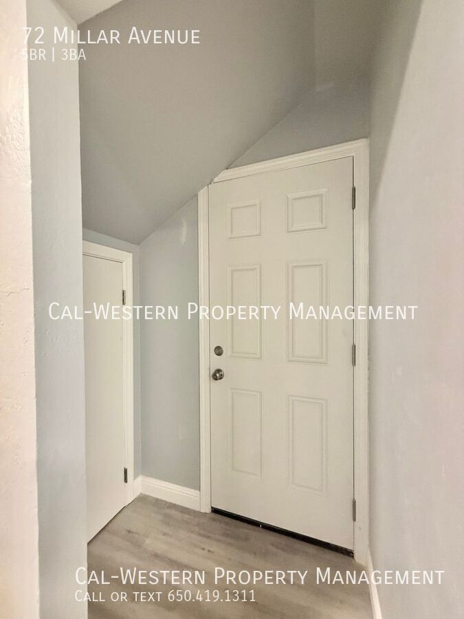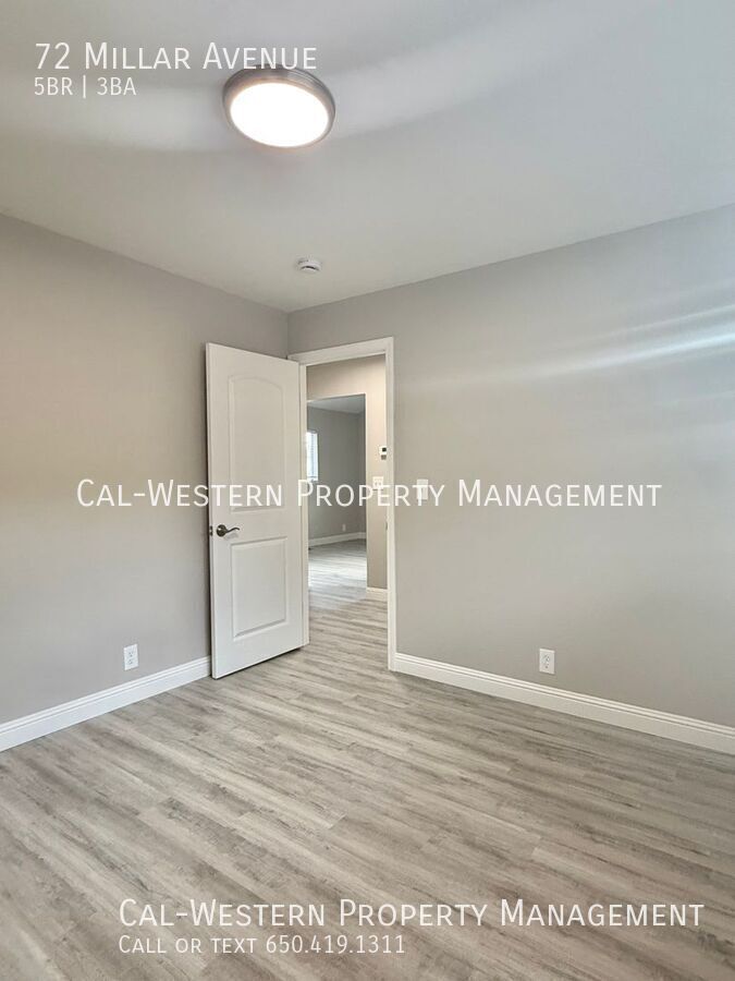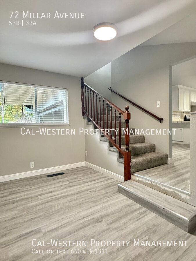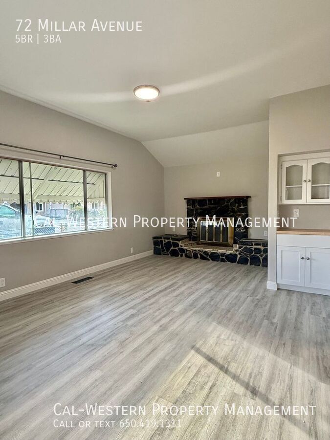 Step into this spacious, fully renovated 5-bedroom, 3-bathroom, two-story home, ideally located in the Alum Rock district. Generous 5 bedrooms and 3 full bathrooms across two stories. Experience fresh paint throughout, new doors, closet doors, and light fixtures. Laminate flooring flows across the entire first floor, complemented by brand-new, plush carpet upstairs. The kitchen boasts stainless steel appliances, including a gas range/oven and a side-by-side refrigerator, set against classic tile countertops. Enjoy a large, private backyard situated on a sizable lot, plus an upstairs patio deck perfect for relaxation. Note: The fireplace is for decorative purposes only and may not be used for actual fires. Located in the Alum Rock District, with nearby schools including Lyndale Elementary, William Sheppard Middle School, and James Lick High School. Prospective tenants are advised to verify school enrollment with the respective district. All persons over the age of 18 intending to reside in the home must submit a separate application and qualify individually. Applicants must demonstrate good credit history. No past evictions will be accepted. Applicants must have no active accounts in collections. Please drive by the property location to confirm the area meets your needs before contacting us. Appointments are required and must be scheduled directly through ShowMojo. Tenant Responsibility: All utilities (Water, PG&E, Garbage) are the sole responsibility of the tenant. Landscaping service is included in the rent.