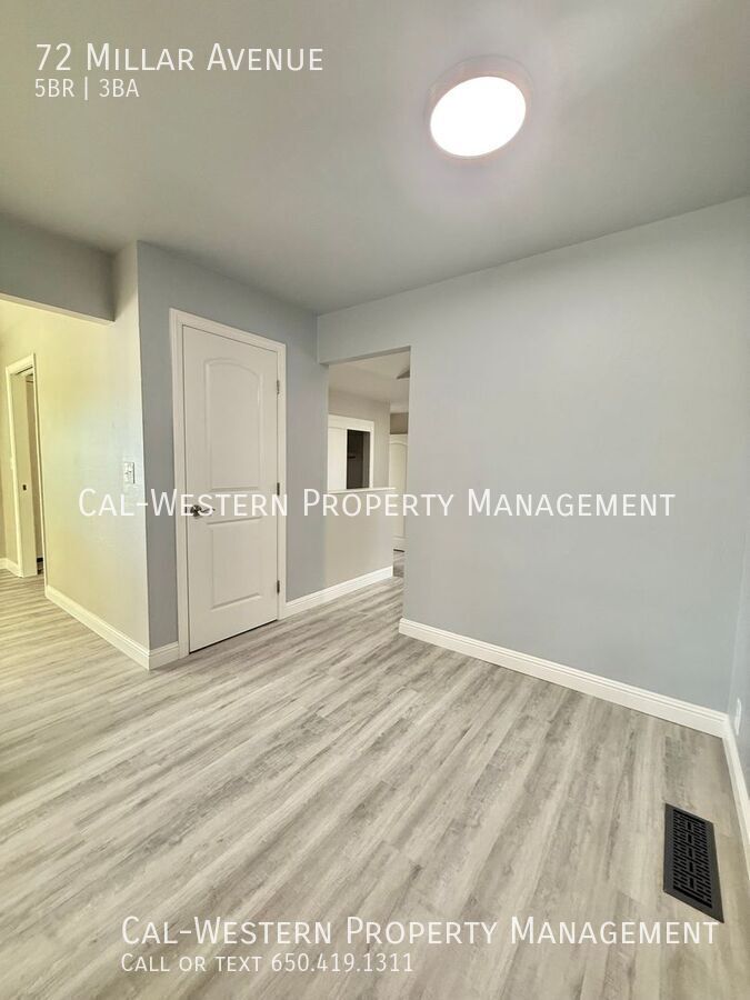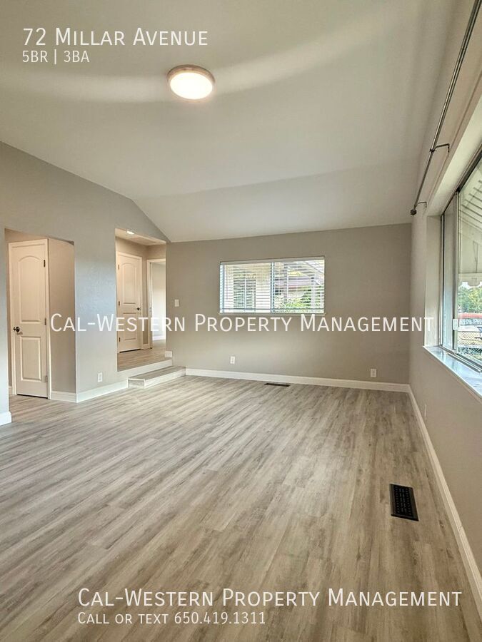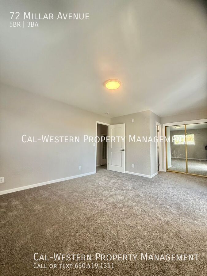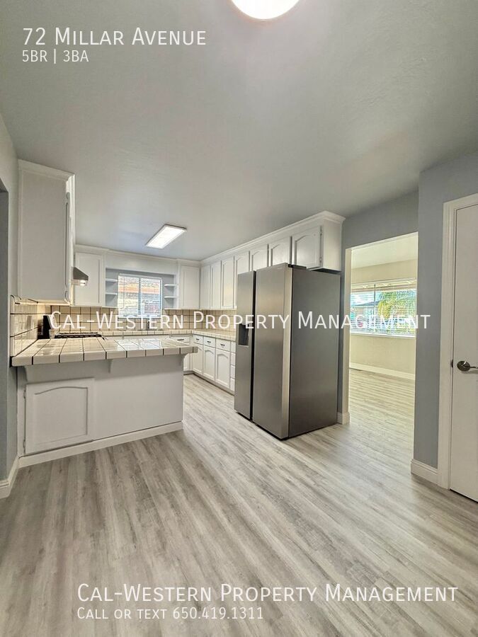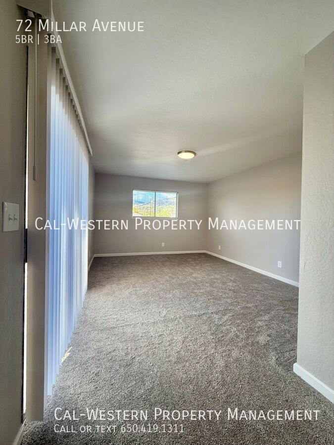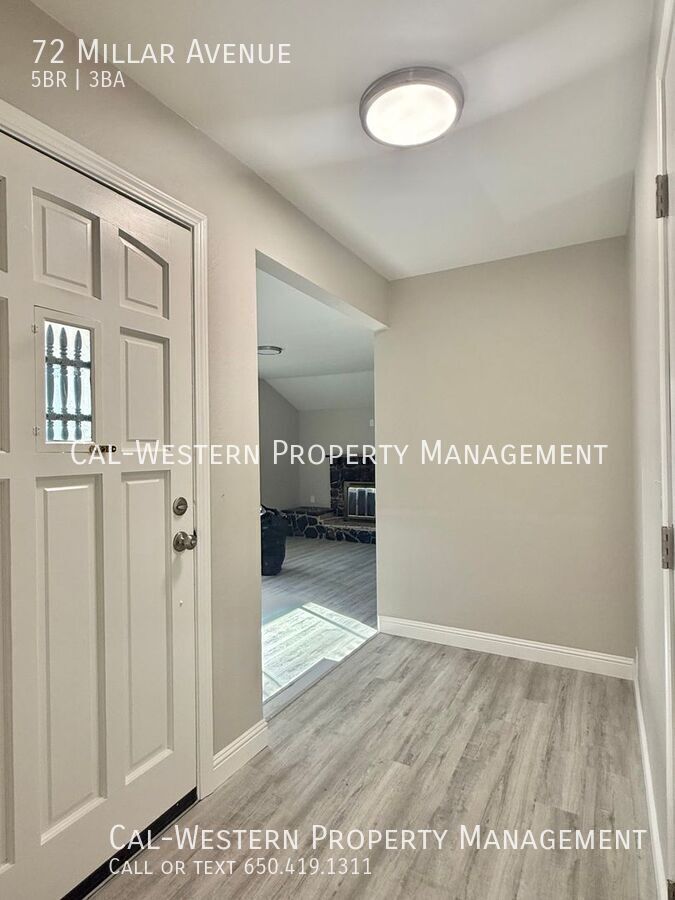Step into this spacious, fully renovated 5-bedroom, 3-bathroom, two-story home, ideally located in the Alum Rock district. Generous 5 bedrooms and 3 full bathrooms across two stories. Experience fresh paint throughout, new doors, closet doors, and light fixtures. Laminate flooring flows across the entire first floor, complemented by brand-new, plush carpet upstairs. The kitchen boasts stainless steel appliances, including a gas range/oven and a side-by-side refrigerator, set against classic tile countertops. Enjoy a large, private backyard situated on a sizable lot, plus an upstairs patio deck perfect for relaxation. Note: The fireplace is for decorative purposes only and may not be used for actual fires. Located in the Alum Rock District, with nearby schools including Lyndale Elementary, William Sheppard Middle School, and James Lick High School. Prospective tenants are advised to verify school enrollment with the respective district. All persons over the age of 18 intending to reside in the home must submit a separate application and qualify individually. Applicants must demonstrate good credit history. No past evictions will be accepted. Applicants must have no active accounts in collections. Please drive by the property location to confirm the area meets your needs before contacting us. Appointments are required and must be scheduled directly through ShowMojo. Tenant Responsibility: All utilities (Water, PG&E, Garbage) are the sole responsibility of the tenant. Landscaping service is included in the rent.