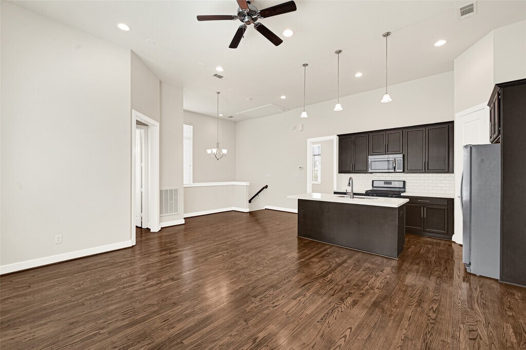 Nestled in the heart of East Downtown,this updated home in a gated community boasts high ceilings,fresh paint,and new bedroom carpet. With 2 beds,2.5 baths,a kitchen featuring granite counters and stainless steel appliances,the open floor plan is perfect for entertaining. The primary bedroom offers dual sinks,separate shower,soaking tub,and walk-in closet,while the secondary bedroom includes an attached bath also with separate shower and tub. Complete with a fridge,washer,and dryer,this property is minutes away from Downtown,East River,Daikin Park,and Shell Energy Stadium,with easy access to bars,restaurants,and cultural attractions. Just steps from the METRORail station,this home offers a prime location for city-wide exploration. MLS# 12983247