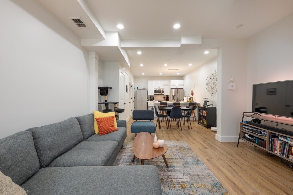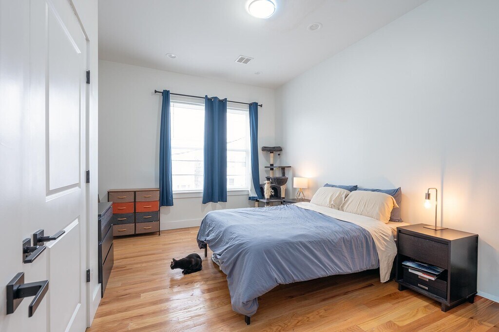 Step inside and instantly feel at home — this stunning duplex condo has been thoughtfully designed for those who love to live well, blending modern elegance with everyday comfort in one of Jersey City's most sought-after neighborhoods. The main level welcomes you with a bright, open floor plan that flows effortlessly from room to room, ideal for hosting dinner parties or simply unwinding after a long day, while the chef's kitchen is a true showstopper featuring premium Samsung smart appliances and a generous island perfect for morning coffee, casual meals, or weekend entertaining. A dedicated dining room sets the scene for memorable gatherings, and a convenient half bath and in-unit laundry round out this level beautifully. Upstairs, two expansive king-sized bedrooms offer a true retreat, each paired with a spa-inspired ensuite bath, soaring ceilings, and corner windows that flood the space with glorious natural light — the kind of home you'll look forward to coming back to every day. There is a bonus private patio off the hallway perfect for BBQ's and entertaining. Beyond your front door, everything you need is just moments away — one block from JFK Blvd for effortless access to NYC and local transit, a short stroll to the vibrant Central Avenue business district with beloved restaurants and boutiques, and easy reach to the Congress Street Light Rail station, the charm of Hoboken, and the award-winning Washington Park. This is more than a home — it's a lifestyle upgrade. Unit comes with a private off street parking spot.