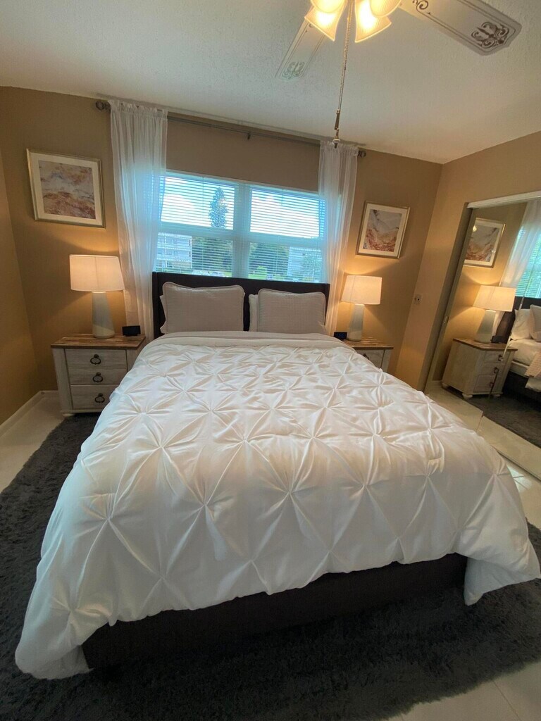 AVAILABLE WINTER 2026-27 ALL INCLUSIVE,IMMACULATE,LIGHT & BRIGHT,2ND FLOOR (NO LIFT),corner condo with wrap around hurricane windows! Electicity,WiFi,cable,water,sewer,trash,and lots of amenities included in rent ! This 2/1.5 corner condo boasts tile flooring,extra storage in kitchen,disposal,D/W,OVER CABINET LIGHTING,LUXURY LINENS,NEWER FLATWARE,COOKING VESSELS,and furniture is newer,2 flat screen TV's,Queen bed in primary and trundle bed in guest,beautiful,tranquil patio with lounge chairs to relax and enjoy the Florida lifestyle. Walk to Newport pool and fruit trees outside your windows! Quiet location,easy access to Powerline road. NO SMOKING,NO PETS MLS ID B26018853
