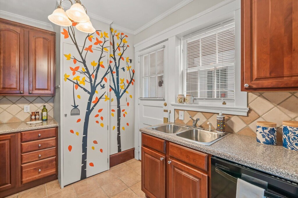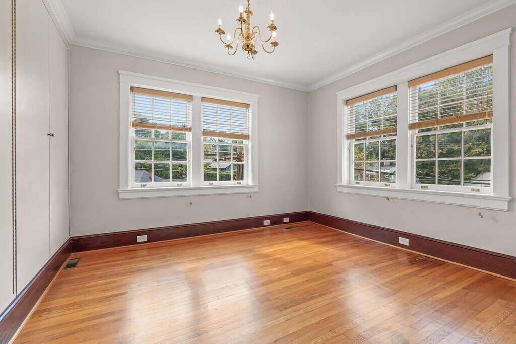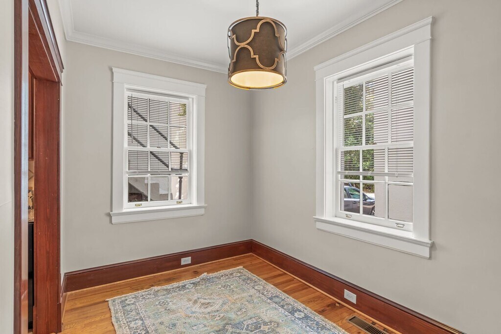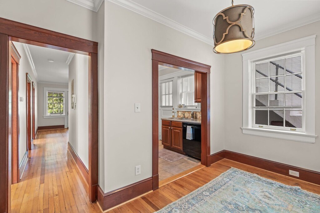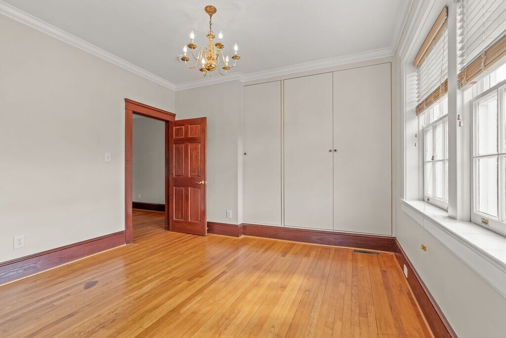 Welcome to Historic 72 West End Boulevard! The Shenandoah Apartment house was thoughtfully renovated in 2007 to house 6 individual condo units. #2 is a main level condo with 2 bedrooms, 2 bathrooms, dining room, living room, & charming screened in porch on the front. The primary bedroom is ensuite! Residents most frequently enter from the back where there is an assigned parking space and easy access to the kitchen entrance. However, there is a front interior entry as well. Very functional kitchen w/ tiled backsplash and floor, vibrant pantry/laundry cabinets for hidden stackable washer/dryer & stainless refrigerator to remain! Features include: Lovely hardwood floors dark wood trim w/ neutral paint through main living! Large historic windows offering gorgeous light filled rooms, Floor to ceiling tiled bathrooms, Spacious bedrooms w/ built in closets, & basement storage room No Cats, dogs okay.