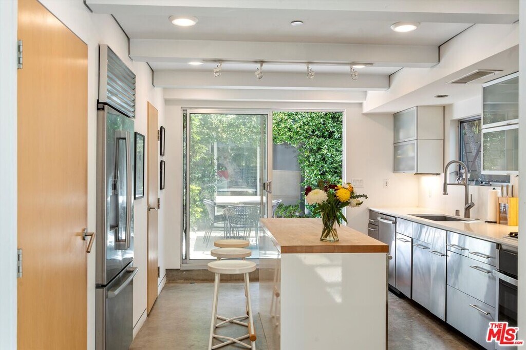 Welcome to this architectural modern home in the heart of Venice, where a private front yard opens to a bright, open floor plan filled with natural light. Floor to ceiling windows and polished concrete floors create a clean, modern feel throughout. The kitchen is designed for both style and function, with a large island and breakfast bar, stainless steel appliances, and direct access to a private patio perfect for outdoor dining. The second level features a comfortable guest bedroom with privacy, while upstairs a flexible lounge works well as a media room or creative space. An adjacent bedroom suite opens to its own private patio, offering a quiet retreat. The primary suite feels open and calm with tall ceilings, a walk in closet, and a spa like bath, plus a private mezzanine for work or downtime. A rooftop deck crowns the home with sunset views and space to gather with friends, while the finished garage doubles as a home gym. Located in a walkable Venice neighborhood close to dining, outdoor activities, and the beach, this home captures the ease and energy of modern Venice living. Photos from previous lease in 2024. MLS# 26645225