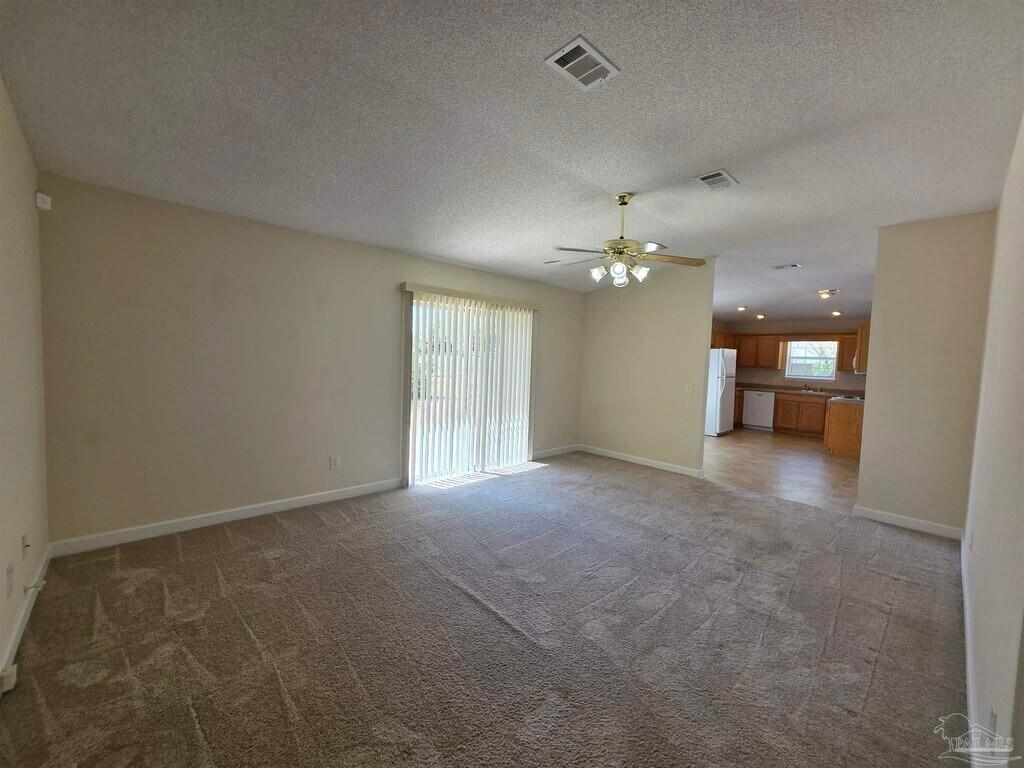 Welcome to our charming home in Southwest Pensacola,FL! Located in a neighborhood close to NAS Pensacola back gate,this 3-bedroom,2-bathroom house offers a comfortable and convenient living experience. Spacious living room with sliding doors that flows to the kitchen and dining area that creates a spacious and functional layout. A large pantry provides ample storage for all your culinary needs. The master bedroom boasts a walk-in closet,perfect for organizing your wardrobe. The master bathroom features a double vanity,adding a touch of luxury to your daily routine. Ceiling fans throughout the house ensure a cool and comfortable atmosphere. The flooring is a combination of carpet and vinyl,offering both comfort and durability. An indoor laundry room adds convenience to your daily chores. Step outside onto the open patio,where you can enjoy the Florida sunshine and entertain guests. The 2-car garage provides secure parking for your vehicles. Double pane windows help to keep the home energy-efficient. Stay comfortable year-round with central heat and air conditioning. The gas water heater and heat system ensure efficient and reliable hot water and heating. Situated in a cul-de-sac,this home offers a quiet environment. Additionally,you'll have access to a neighborhood park,perfect for outdoor activities and relaxation. Don't miss out on this fantastic opportunity to make this house your home. No smoker's please. Please note that no pets are accepted in this property. Roommates,if allowed,must submit their applications separately and qualify individually.