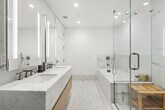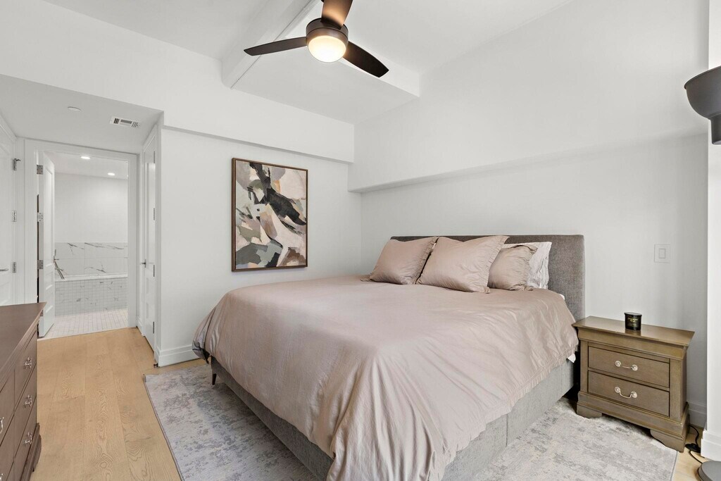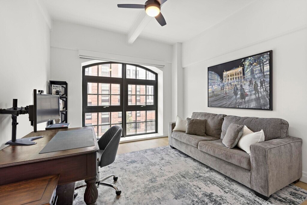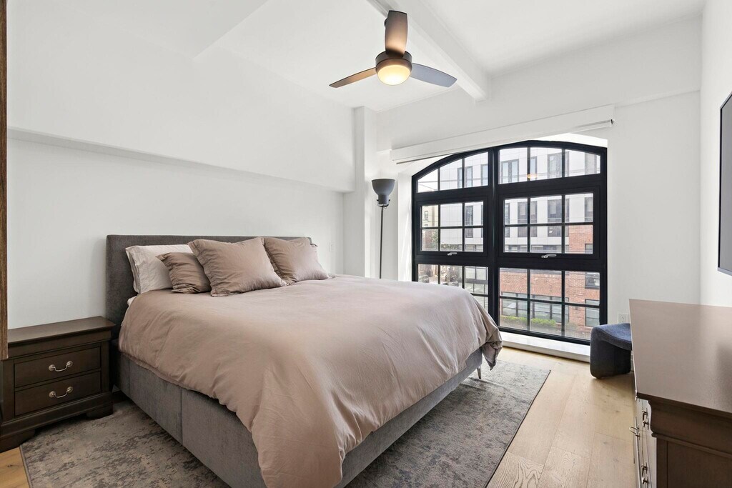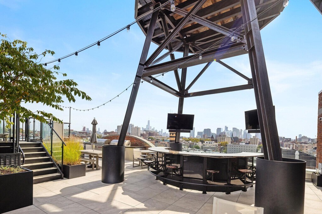 Experience the ultimate in luxury living at Wonder Lofts, Hoboken's newest and most sophisticated community, designed with LEED Gold standards and cutting-edge NYC style. Formerly the historic Wonder Bread Factory, this property was transformed just three years ago into 83 exquisite residences, complemented by 14,400 square feet of both indoor and outdoor shared lifestyle spaces. The top-tier amenities include an infinity pool, a landscaped patio, a sun deck, an arched outdoor bar beneath the restored water tower, BBQ facilities, and a fire pit—all offering breathtaking 360-degree views of NYC and Hoboken. A private 339 sq ft rooftop cabana with Midtown NYC views provides an exclusive retreat from the shared spaces. Conveniently located on the second floor, the celebrated residents lounge boasts a celebrity chef-quality kitchen, a spacious dining room, a double-sided fireplace, a cozy living room, a fully equipped game room, and access to a garden patio. Families will appreciate the padded children's room and art center, while fitness enthusiasts can enjoy the full-sized gym and yoga studio. The study hall, pet grooming room, bike storage area, commercial size laundry and EV charging stations cater to all your practical needs, while the screening room offers a perfect spot to unwind. From the grand two-story, 24-hour concierge-attended lobby, enjoy easy access to a NYC Bus stop right across the street. Residence 206 is a meticulously maintained two-bedroom, two-and-a-half-bathroom home, enhanced with additional track lighting, optimized closet systems, and powered window treatments. The expansive 1,530 sq ft space opens to a great room flooded with morning sunlight through unique breathtaking arched top floor-to-ceiling black-clad windows. The stunning kitchen features a center island, elegant white Calacatta Laza countertops, white cabinetry with oak trim, and high-end appliances, including a built-in Sub-Zero refrigerator, Wolf gas range, oven, microwave drawer, Bosch dishwasher, and a walk-in food pantry with custom matching doors. The home boasts beautiful 7.5-inch European white oak plank floors and floating millwork trim. The primary bedroom suite offers a luxurious walk-in closet and a spa-like ensuite bathroom with a dual vanity, large walk-in shower, and separate soaking tub. Additional features include an in-unit laundry room and keyless entry. This residence includes a spacious two-car tandem parking space and a private caged storage area, conveniently located directly off the lobby entry for ultimate convenience. Discover why Wonder Lofts 206 is the home of your dreams.