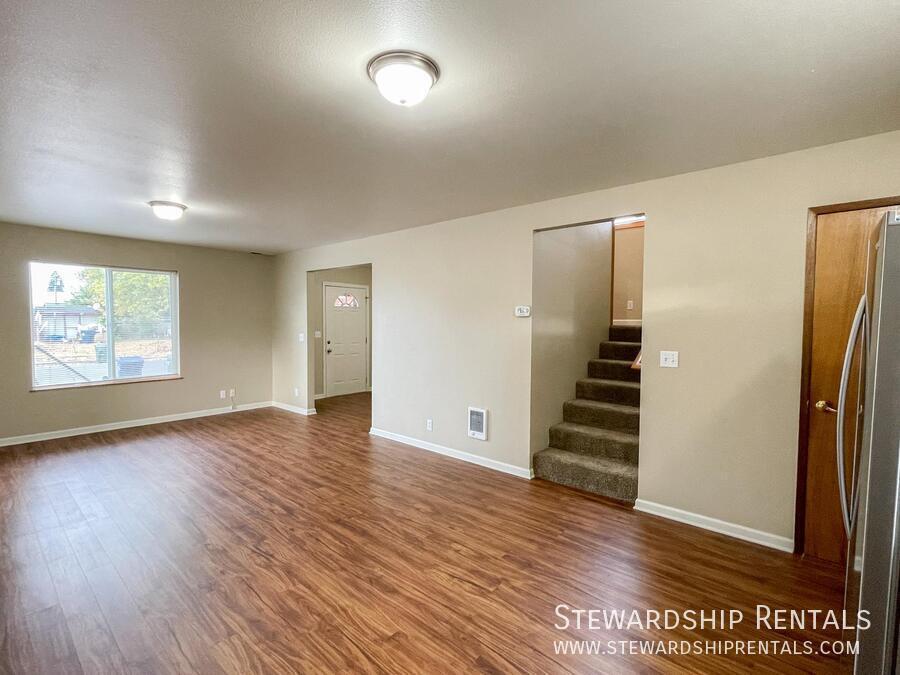2 WEEKS FREE RENT Three bedroom home in Junction City. This home features modern appliances in the kitchen, covered patio, and a storage shed! Residents are responsible for all utilities including yard care. *Approved applications are required before scheduling a tour* NO APPLICATION FEE! For more information or to apply go to Back Patio Back Yard Carpet Driveway Electric Heat Vinyl Plank Floors Vinyl Windows Washer & Dryer Hook Ups