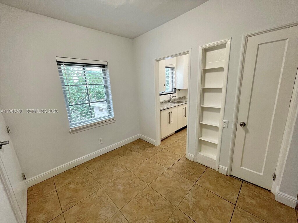 Large ground level Art Deco studio which features semi private entry, new flooring in the living area, new appliances, hurricane impact windows, and great closet space with custom built in shelving. Laundry facilities are on premises and small pet is OK. MLS # A11965306
