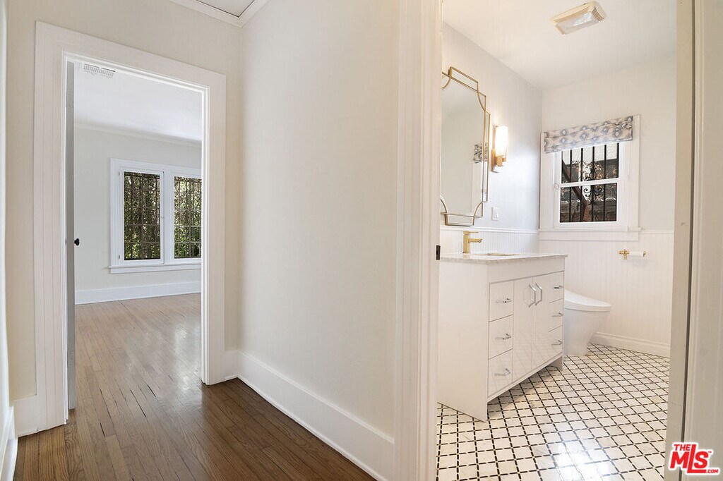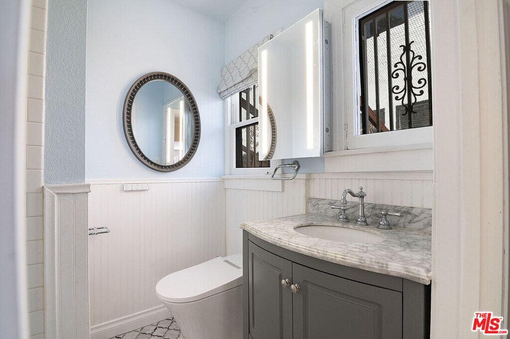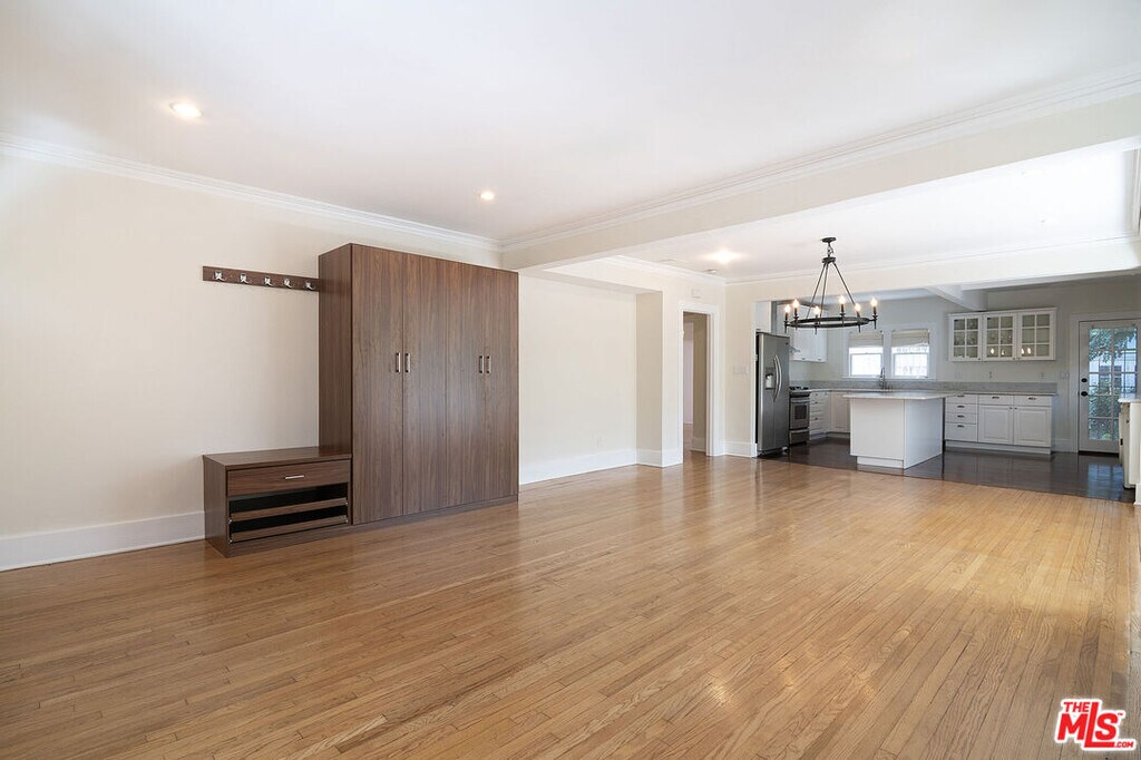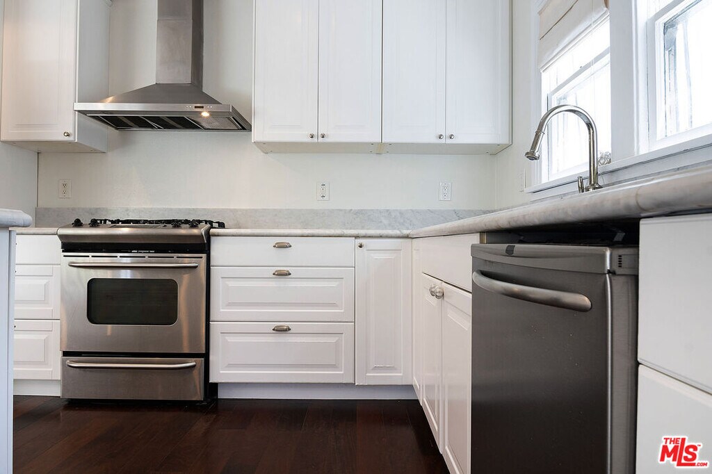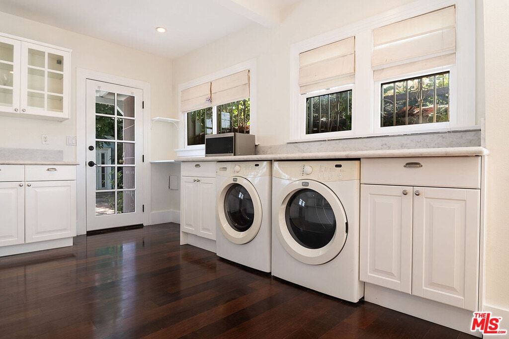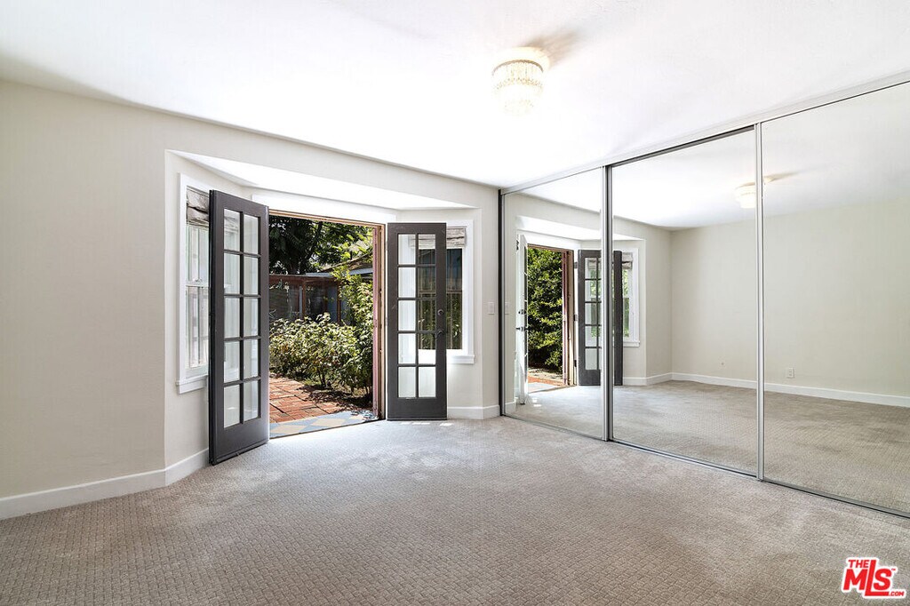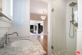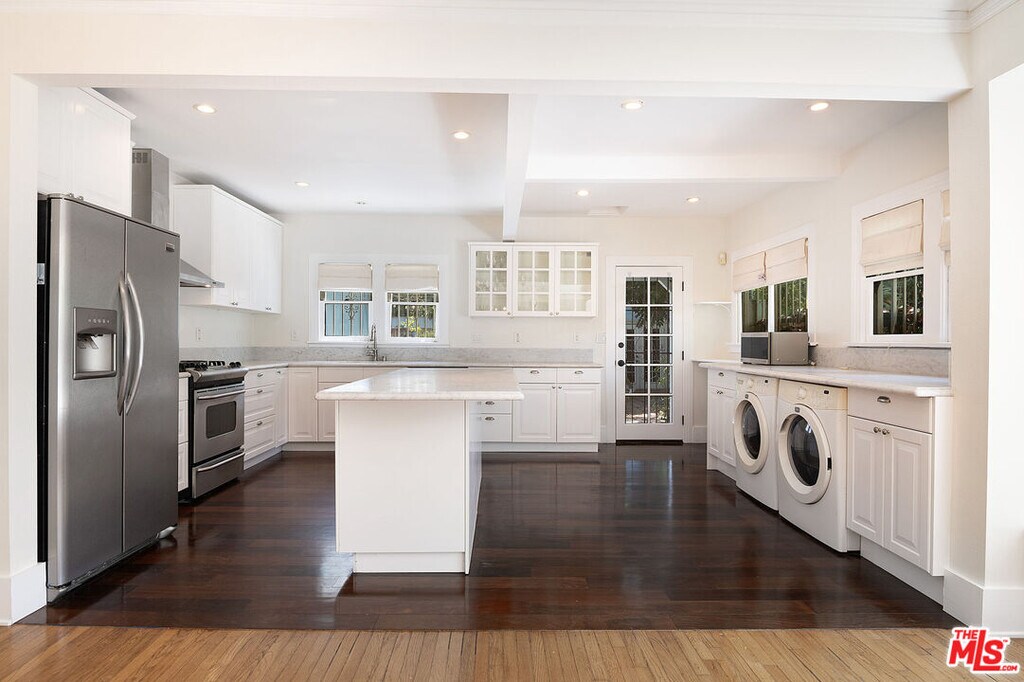 Welcome to this fully hedged and gated single-family home featuring 2 bedrooms and 3 bathrooms. Bright and inviting, the open-concept layout offers a sun-drenched living room complete with a custom coat closet and decorative fireplace. The standout kitchen showcases elegant Carrera marble countertops, stainless steel appliances, and a charming breakfast bar that flows seamlessly into the dining and living areas. The spacious primary suite includes a dedicated office or sitting area, custom closet, direct access to the backyard through French doors, and a stylish en-suite bathroom with a walk-in shower. The second bedroom offers a generous walk-in closet and tranquil views of the lush front yard. Step outside to your private backyard retreat, featuring mature landscaping, fruit trees, and plenty of space to relax or entertain. A converted garage provides a versatile bonus space with a full bathroom and above-ground spa. Additional features include two driveway parking spaces, central AC/heat, hardwood floors, recessed lighting, and in-unit washer and dryer. Just moments from Melrose's premier shopping, dining, and entertainment!! MLS# 25573755