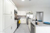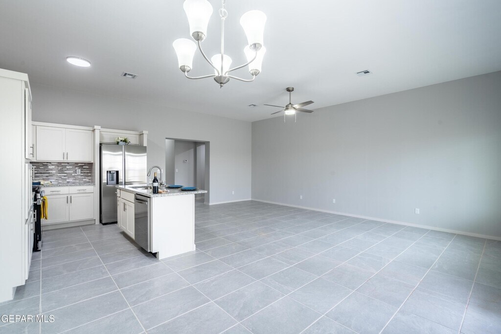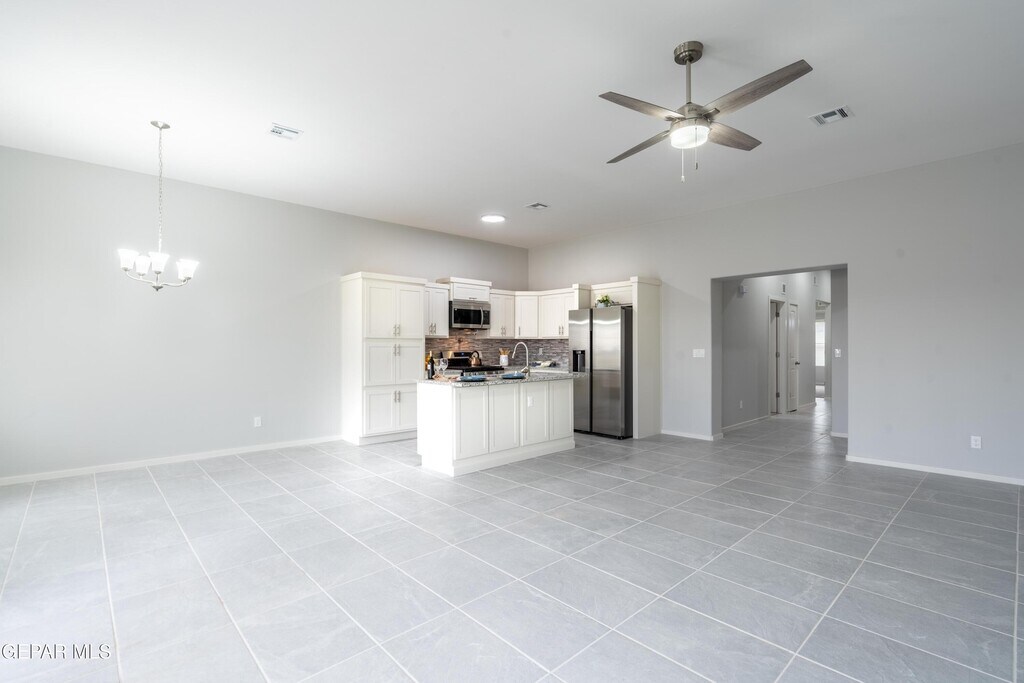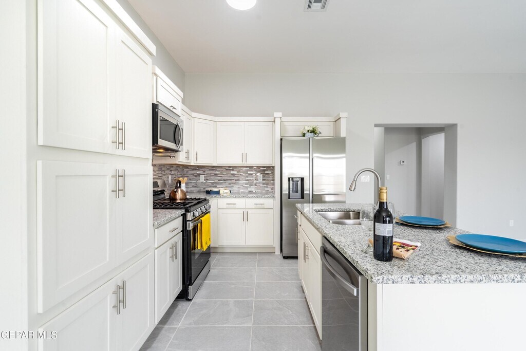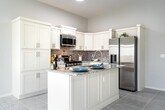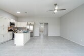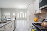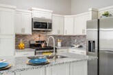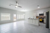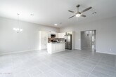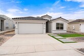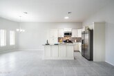 This brand new home for rent offers three bedrooms,two full baths,and a double car garage. Located in a newly developing subdivision,it boasts an open living space with tall windows that flood the area with natural light. The kitchen features elegant grey granite countertops,a spacious island,and brand new stainless steel appliances including a refrigerator,stove,dishwasher,and microwave,complemented by a stylish mosaic tiled backsplash under pristine white cabinetry. All rooms are adorned with luxurious new carpeting. The master bathroom boasts grey granite sinks,a tiled walk-in shower,and a spacious walk-in closet. Each bathroom features granite countertops with timeless stainless steel accents. The front and back landscaping are meticulously designed for easy maintenance,with green turf in the front and gravel in the back,creating a welcoming space for entertaining guests.