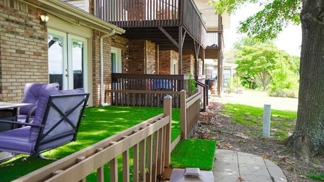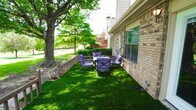 Golf course views in the highly sought-after Trails community! This spacious 3-bedroom, 2.5-bath duplex offers 1,916 sq. ft. of comfortable living with thoughtful design and charming details throughout. The main level welcomes you with an inviting living room featuring a cozy wood-burning brick fireplace. The eat-in kitchen is a chef’s delight with granite countertops, a large island, double ovens, and abundant cabinet space. The primary suite is conveniently located downstairs, complete with a walk-in closet and ensuite bath with dual sinks. Upstairs, you’ll find two generously sized secondary bedrooms sharing a Jack & Jill bath—ideal for family, guests, or a home office. Stylish barn doors add character to the stairway and conceal the utility room. Additional highlights include luxury vinyl plank flooring, decorative lighting, and a detached 2-car garage. Step outside to a back deck with artificial turf overlooking the golf course—perfect for relaxing and enjoying the view. Conveniently located near shopping, dining, and major highways, this home blends comfort with convenience. Bonus: Furniture currently in the home may stay for tenant use or be removed upon request.