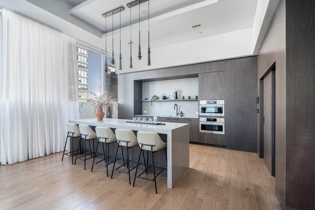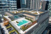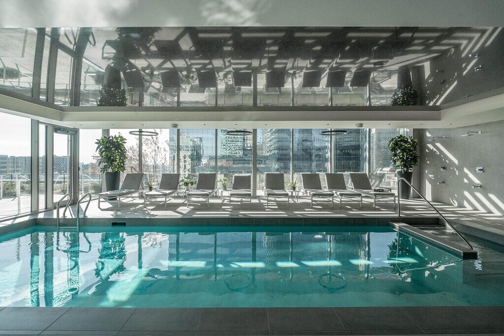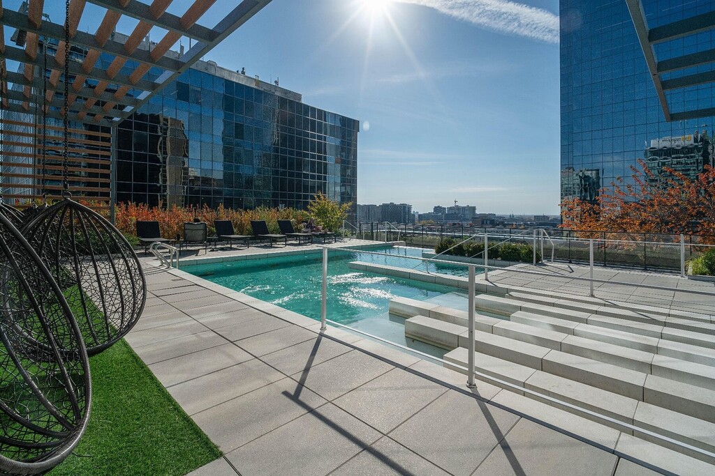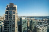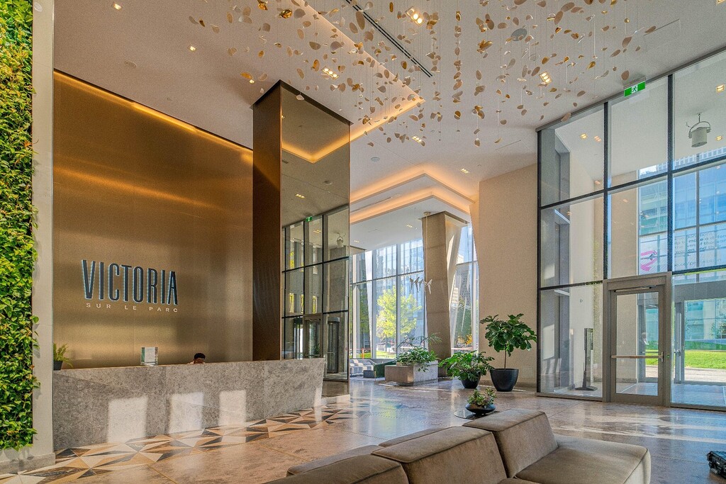 Stunning brand new 2 bedroom, 2 bathroom corner unit boasting spectacular 360 degree city, river and mountain views! Located on the 27th floor of Victoria sur le Parc, in the heart of Old Montreal, this bright and airy unit boasts an open concept kitchen, living and dining area with floor to ceiling windows bathing the space in natural light and offering breathtaking views of the city, the River. Glass doors give access to a large balcony overlooking the St-Lawrence River, an ideal spot to take in the views or to enjoy the summer months.