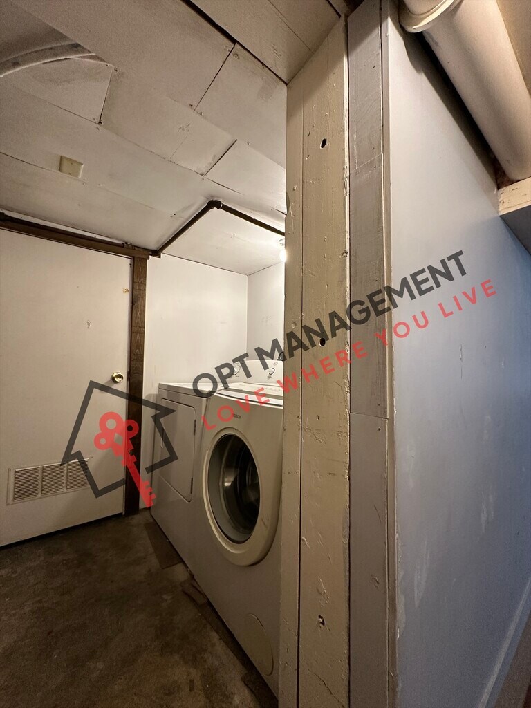 Spacious 1 bedroom in the lower unit of a duplex. Upstairs entry way could be used for a flex space for an office or a storage area. Downstairs is an open concept living room and kitchen. Equipped with an electric oven/range and refrigerator. 1 large bedroom is off the kitchen. A full bathroom with a tub/shower combination. Also included is a washer/dryer. If you are needing garage space, this property can also include an additional 2 car detached garage for additional rent. Utilities not included. No smoking. Pet restrictions apply. All applications are done via Tenantcloud. We will never ask for rent/deposits without doing a showing. This property will never be listed on craigslist.