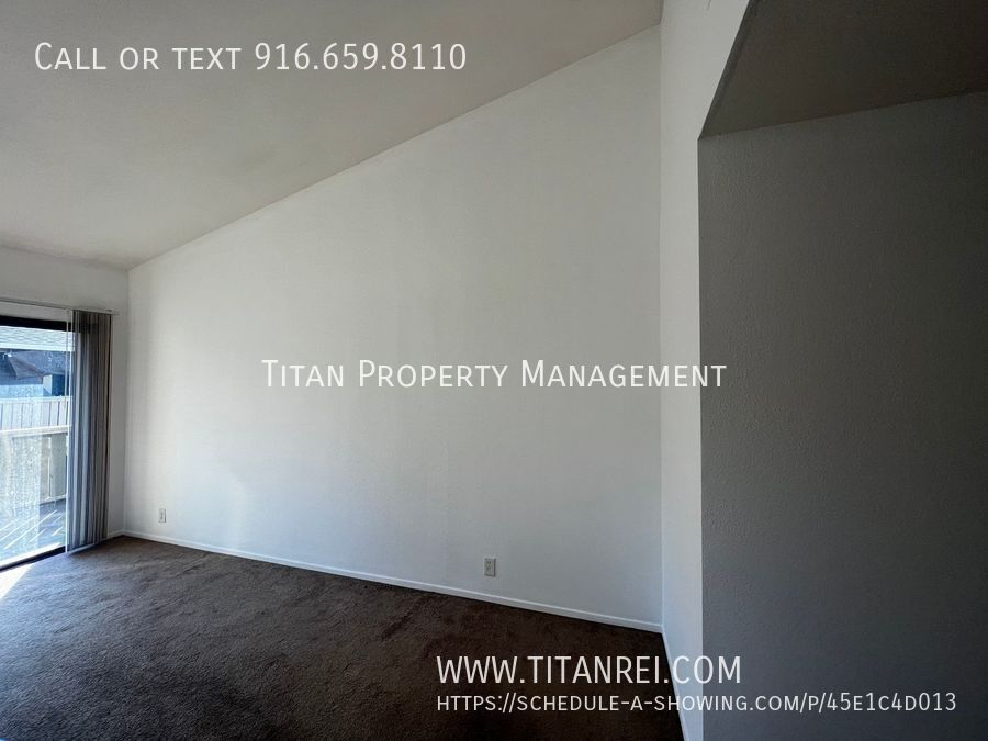 To schedule a showing please click the schedule showing button if available now or contact our leasing team at . Please visit to schedule showing or APPLY NOW. This is a upstairs two bedroom, two bath condo in a mature Roseville complex. This condo features wood burning fireplace, balcony/patio, dishwasher, washer and dryer, and garbage disposal. The kitchen was previously updated with tile counter tops, paint grade cabinets, and stainless steel appliances. Common areas for complex include: pool, tennis court, and mature landscape with creek. Unit comes with a covered spot and there are plenty of additional parking spots. Tenant pays all utilities: City of Roseville (Electric) HOA Dues Reimbursement of $200.00 in addition to rent includes; water, sewer, & garbage. Please note all approved applicants are required to carry renter's insurance throughout tenancy. No pets allowed. Titan Leases include these Resident Benefit Programs ($39.00/mo): 1. Titan Property Management custom Tenant App for Apple & Google. 2. Citizen Home Solutions, The moving concierge service is a third-party company that assists Residents in activating utilities, internet, cable, and alarm services with one simple phone call rather than individualized requests to specific companies. Companies such as ADT, Comcast, and ATT are known to offer promotional programs and discounts. The Utility Concierge Program simplifies the process of transferring all services and utilities into the name of incoming Residents. Citizen Home Solutions Utility Setup Portal Link: 3. Tenant Online Portal and Phone App for Payments, Electronic Statements, and Maintenance. Benefit: Tenants have free access to our Tenant Portal to submit maintenance requests, pay online using all included payment options to include the automatic ACH option, and have access to electronic statements. 4. Piñata- Tenant CASH Rewards for just paying rent on-time: 5. 24/7 Dedicated Live Maintenance Home Assistant. Benefit: Tenants can reach a live person 24/7 for regular or emergency maintenance concerns by phone, text, email, or web. Answer time guaranteed to be less than a minute. 6. Tenants can get reimbursed for Tenant responsible maintenance items and obtain discounts on other services such as Renter's Insurance and Identity Theft Protection. 7. Amenify partnership with Latchel: Dedicated Home cleaning, Chores, Food & Grocery Service, Handyman, and other in-home service teams. Up to $300.00 in credits for housekeeping and grocery delivery. 8. Enrollment in HVAC Maintenance Reduction Program with Second Nature if your rental has central heat & air. Benefit: Tenant receives high-quality filter quarterly with one installed prior to move in as a reminder to replace. Has proven to reduce maintenance on HVAC systems to help make sure you have a consistently operational system with cleaner air in your home. 9. Credit Reporting for All Rental & Utility Payments made during this Lease to Experian. Benefit: Tenants receive the benefit of positive credit reporting for all on-time rental and utility payments to Experian. Helps for future rentals, eventual home buying, and any other loan as it shows your ability to pay on time. 10. CONVENIENT MOVE-IN / MOVE-OUT / LEASE RENEWAL INSPECTIONS. New Residents can enjoy the convenience of moving in at their own time. A lockbox will be provided for the Resident to access on the lease start date. New Residents will also be able to complete a supplemental move-in report within 7 days of lease start using a provided service/app. While Titan Property Management performs detailed move-in inspections with photos prior to Resident occupancies, this unique feature affords Residents the opportunity to provide additional documentation which supplements the Titan Property Management inspections. Other Free Benefits of Renting with Titan Property Management: -One Time Returned Payment Fee Forgiveness (Value $85.00) per 12 months. -One Time Late Fee Forgiveness (Value 8% of rental rate) per 12 months. *Rent must be paid within 3 days of the grace period to qualify. -Home Buying Assistance: If you decide to purchase a home after renting with us, we will assist you in search and negotiation of terms on your new home with professional Buyers Agent representation through our Brokerage division, Titan Realty. We will provide assistance with mortgage qualifying through our preferred Mortgage Broker. We will provide assistance with the complexities of proper homeowners insurance and flood insurance through our preferred Insurance company. We will also provide you with a closing credit as allowed by the Lender. Rental Qualifications: -Tenant credit score of at least 680 with no unpaid liens or collections -No bankruptcy, foreclosure, or judgments in last 3 years -Tenant combined gross monthly income equal to at least 3x monthly rent -No evictions in past 5 years -Tenant has minimum 3 years verifiable good rental history with Current & Previous Landlord or has been a homeowner for a minimum of 5 years. Application Process: Any Resident 18 years of age or older who intends to reside at the property or stay more than 3 days per month must apply and pay a $50.00 application fee. The application fee is required from each applicant as a processing fee to verify income, credit, and eviction history. *The $50.00 application fee is non-refundable once the application processing has begun. Applications are processed as received and the first completed application that is fully qualified (meets all the rental criteria listed above) is approved; property is not removed from advertising until an approved applicant accepts. If your application is completed after another qualified applicant and you are qualified your application can be moved to another listing for up to 30 days without re-applying. We accept payment for processing online by credit card at the time you apply. Required Documentation for Application verification process: 1. Proof of Identification: Valid 