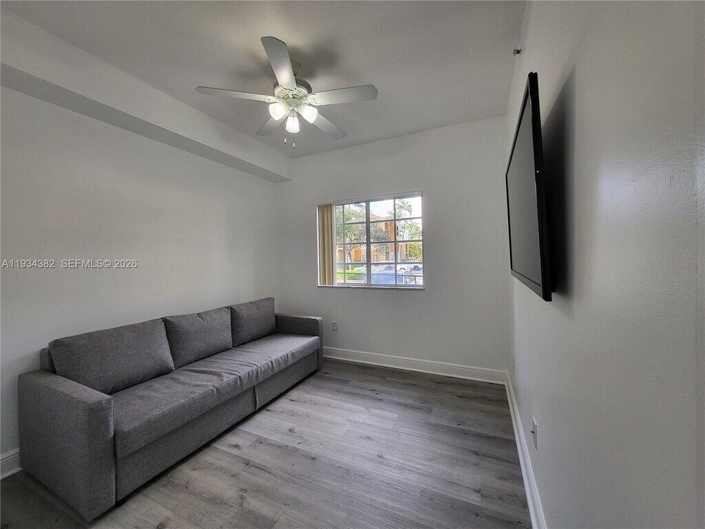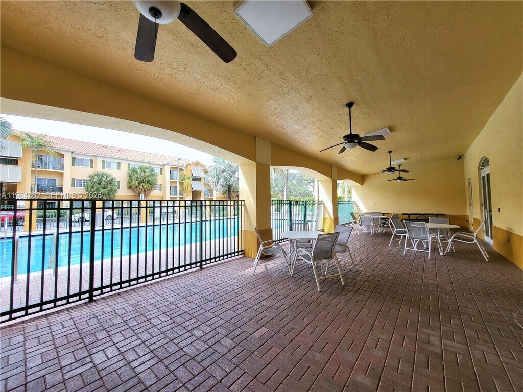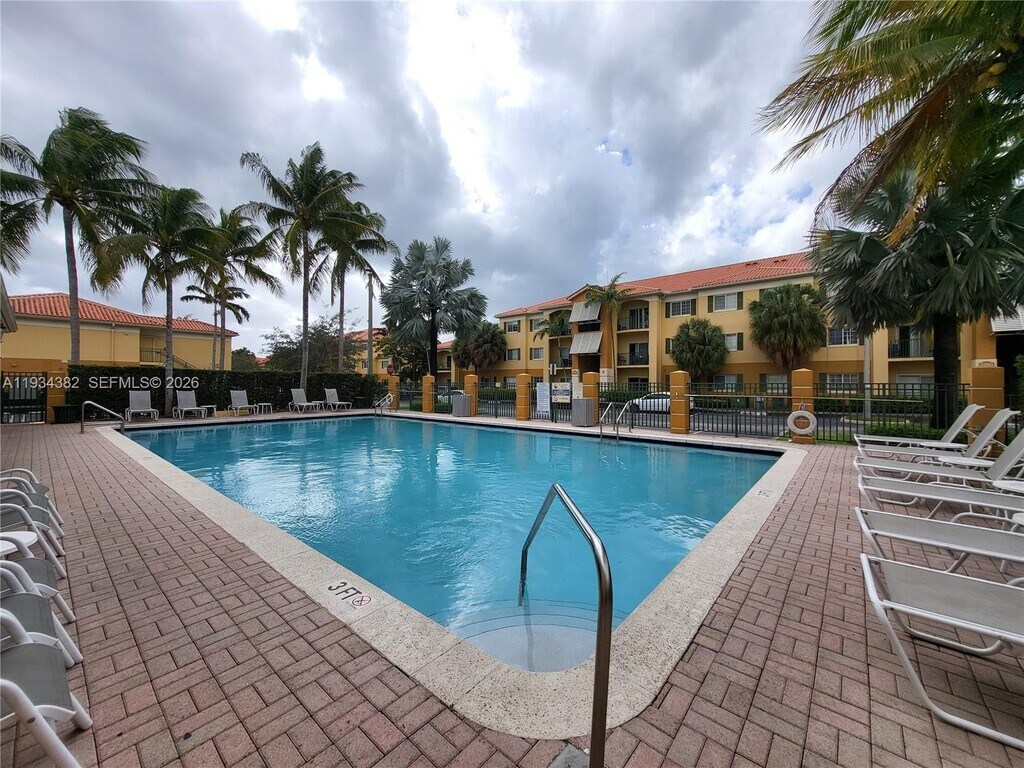 Spacious and bright 2-bedroom, 2-bath ground floor condo at Palm Gardens at Doral, freshly painted and ready for move-in. Featuring a comfortable open-concept layout with living, dining, and kitchen areas. The living room provides access to a balcony. The primary bathroom features a walk-in shower, and the second bathroom includes a tub. Located in a desirable community offering gated access, swimming pool, fitness room (exercise room), and clubhouse for events, this home provides resort-style amenities. Excellent location near the Turnpike and major highways, with easy access to shopping, dining, and entertainment. Situated in a well-regarded part of Doral with access to quality schools, this rental is ideal for families or professionals seeking comfort, convenience, and community amenities. MLS # A11934382