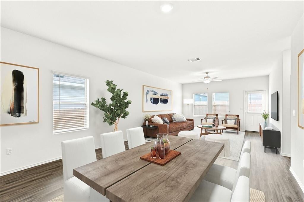 Refrigerator, Washer and Dryer provided! SUPER LOW utility bills w/solar panels! Gorgeous like new one story 4B/2B home in Excellent location! Open floor plan with lots of natural light; Vinyl floor throughout the common area and 2 big bedrooms, carpet only in 2 small bedrooms; Quartz counter-tops in kitchen with luxury refrigerator and a very new Airfry Oven; Big TVs and Yard care tools provided. Approximately 8 miles to Austin Downtown, 4 miles to airport and 3 miles to McKinney state park. HOA amenities include swimming pool, kids playground, walking trails...Enjoying the beautiful comfort home!