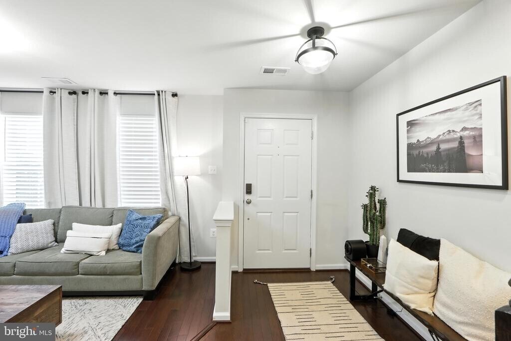 Welcome Home to this immaculate 3 level townhome. Solar equipped and electric bill can be as low as $5.00 per month. The first level. Includes a welcoming family room, powder room. and foyer area to greet guests. Perfect location for an office or flex room.The bright and open second floor offers a state of the art kitchen, dining room, living room. and powder room. Perfect flow for entertaining and to relax. The Generous kitchen is equipped with upgraded appliances including Samsung refrigerator with smart video and wifi, large center island seats 6 or more, and plenty of storage. Living room features a gas fireplace and custom built-ins. Open dining room with direct access to deck. Upstairs, the primary suite features a large custom walk-in closet and ensuite bath with duel sinks. Two additional bedrooms and bath. Convenient laundry with wifi equipped washer and dryer. Hardwood floors on all 3 levels. Pull into your 2 car garage, equipped with electric charging station & epoxy floors. Located in Brick Yard Station, this community has everything , full-service clubhouse, gym, pools and shops, you are walking distance to the Marc commuter train and public transportation.