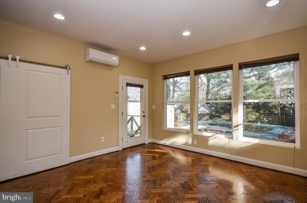 Incredible opportunity to rent a spacious 3-level single family home in the desirable Town of Chevy Chase with private pool! This beautifully maintained residence boasts hardwood floors throughout the main living areas, a charming wood-burning fireplace, a bright enclosed porch with ample storage, and an updated eat-in kitchen with slow close cabinetry, newer stainless steel appliances, and durable quartz countertops. The main level shines with a stunning addition featuring a dramatic family room with soaring ceilings and a luxurious primary suite complete with a walk-in closet and full bath. From here, step outside to the private backyard oasis with an in-ground pool—perfect for entertaining or relaxing. Upstairs, you’ll find three comfortable bedrooms and a full bath. The fully finished lower level offers impressive versatility with a recreation room, workshop, laundry, and a spa-like full bathroom with soaking tub. Additional highlights include a private driveway, detached garage, deck, EV charging cable, and exceptional convenience—located directly across from Elm Street Park and just steps from Bethesda Metro Station, restaurants, shopping, and all the amenities of downtown Bethesda and the Town of Chevy Chase. Plus, enjoy premium town services like trash and recycling pickup right from your bin storage area—no need to bring them to the curb. Good credit required. Pets case-by-case with $50 monthly pet rent per pet.