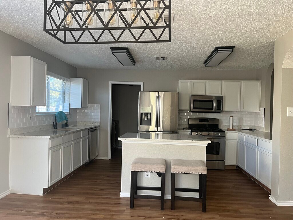 Newly renovated home with a new kitchen, floors (no carpet), bathrooms and paint. 3 bedroom, 2 bathroom home in Lake Port Meadows in Arlington, TX. Refrigerator, Dishwasher, washer and dryer provided. Fenced backyard. Brand new bathrooms with garden tub in the primary room and standing shower in the secondary bath. Linens closet and walk-in closet in the primary bedroom.The home is located in the Mansfield school district with walking distance to Thelma Jones Elementary School and walking distance to Mansfield Timberview High School. A HUD and Section 8 approved property.