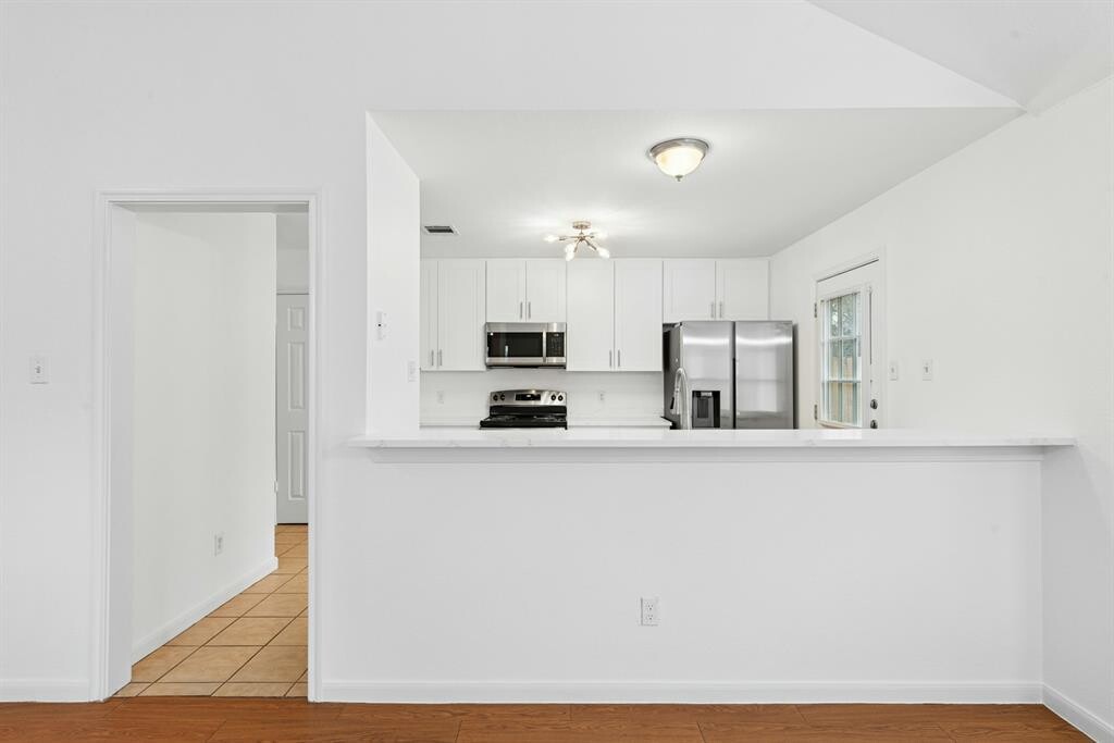 Move-in ready! Just off the Y" (290W & Hwy 71) in Oak Hill, SW Austin. Nicely maintained with updated kitchen and baths. Find 3 beds, 2 baths and approximately 1500sf of living space. Open floor plan with lots of natural lighting and high ceilings in the living room, dining room, foyer and primary bedroom. All bedrooms spacious with walk in-closets in 2 of 3 of them. Sunny kitchen has a breakfast bar and is equipped with dishwasher, oven/range, microwave refrigerator and disposal. Contemporary window treatments throughout, updated lighting & ceiling fans. Find wood grain and tile flooring - no carpet. The laundry room has a washer and dryer hookup and is conveniently located off the kitchen (and owner will consider adding a washer and dryer if needed). There is a spacious one car garage for your vehicle and/or extra storage with an automatic door opener and driveway parking too. Enjoy a large private fenced back yard with new fencing. Walk to restaurants, shopping, banking and easy commuting to 290, 71 and Mopac (1). Depending on time of day; approx. 10 minutes into downtown Austin and 15 minutes to the airport. A company vehicle is permitted as there is street parking. The last pics are of a county park only a mile or so away and there is also a brand new kiddo park that is just across the street. Your Austin home awaits!"
