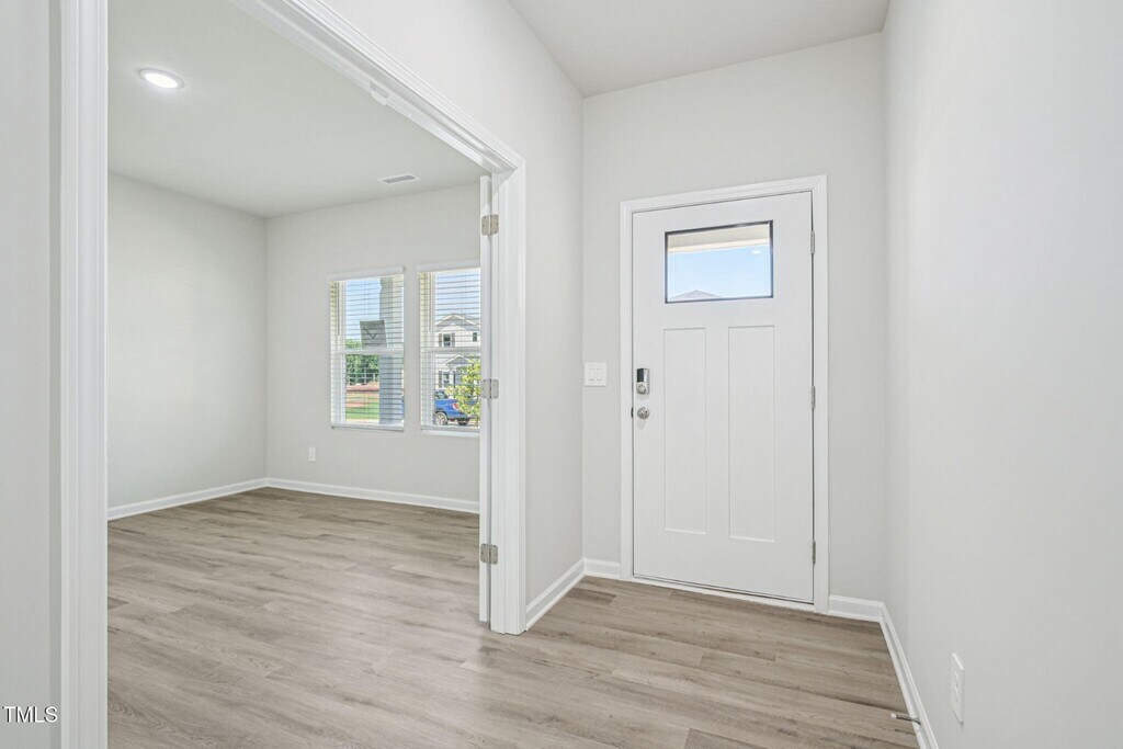 Brand New spacious 5-bedroom, 3 full bath home with a versatile loft, located in the desirable Oak Manor community in Garner. This thoughtfully designed floor plan features a convenient main-floor guest bedroom, along with a flexible space perfect for a home office or study. The main living areas showcase durable luxury vinyl flooring, while the gourmet kitchen stands out with premium quartz countertops, upgraded cabinetry, and a full suite of stainless steel appliances—ideal for both everyday living and entertaining. Upstairs, enjoy a large loft area perfect for relaxing or additional living space, along with an expansive primary suite featuring a walk-in tiled shower and elegant finishes throughout. The home also offers modern energy-efficient features, including spray-foam insulation and whole-home air filtration for added comfort and savings year-round. Situated just minutes from I-40, Downtown Raleigh, and White Oak Crossing, residents can enjoy convenient access to shopping, dining, and entertainment. Enjoy onsite amenities including a swimming pool, recreation center, and walking trails. Move-in ready with washer, dryer, refrigerator, and blinds included.