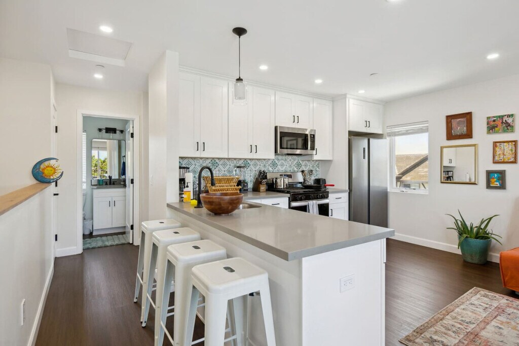Welcome to this modern 3-bedroom, 1250 sqft home in National City, offering a comfortable and inviting atmosphere. Feel at home with convenient parking for up to 2 vehicles in the carport and enjoy being just 5-10 minutes away from shopping centers and local restaurants. The kitchen is equipped with all the modern appliances you'd expect, including a coffee machine. Essentials like coffee, cooking oil, sugar, and salt are provided. Enjoy your meals at the dining tables and chairs available both inside and outside the home. The air-conditioned living area features a flat-screen smart TV with cable and streaming services like Netflix, YouTube, and Disney+, ensuring entertainment for everyone. The bedrooms are furnished with cozy linens and ample pillows, ensuring a restful night's sleep. The master bedroom includes a king-size bed, a crib, and a smart TV, while the other bedrooms offer queen beds and a workspace area. Three fully stocked bathrooms provide everything you need, including shampoo, body wash, a hairdryer, and fresh towels. Pets are welcome, and covered parking for 2 cars is conveniently located right under the house. In-unit washer, dryer, and detergent are available for your convenience. Located in National City, this home is just a short drive from shopping centers and local restaurants, making it easy to explore the area. Use Google Maps with "E 22nd St, National City, CA 91950" for accurate distances to specific locations. Self-check-in is available via lockbox or keypad, with instructions sent at noon on your check-in day. Early check-in or late check-out is available for a small fee. Please be mindful of noise levels to avoid neighbor complaints, especially after 9 PM, as violations can result in a $1000 penalty. Unauthorized guests or pets will incur a $100 per night penalty. Report any damages or issues immediately, and dispose of trash in provided bins to avoid overflowing. No illegal activities are allowed, and please maintain cleanliness by not bringing food into the bedrooms. For those working remotely, the home offers a choice of desks and chairs inside and outside, along with 500Mbps Wi-Fi, making it easy to host online meetings or share large files.