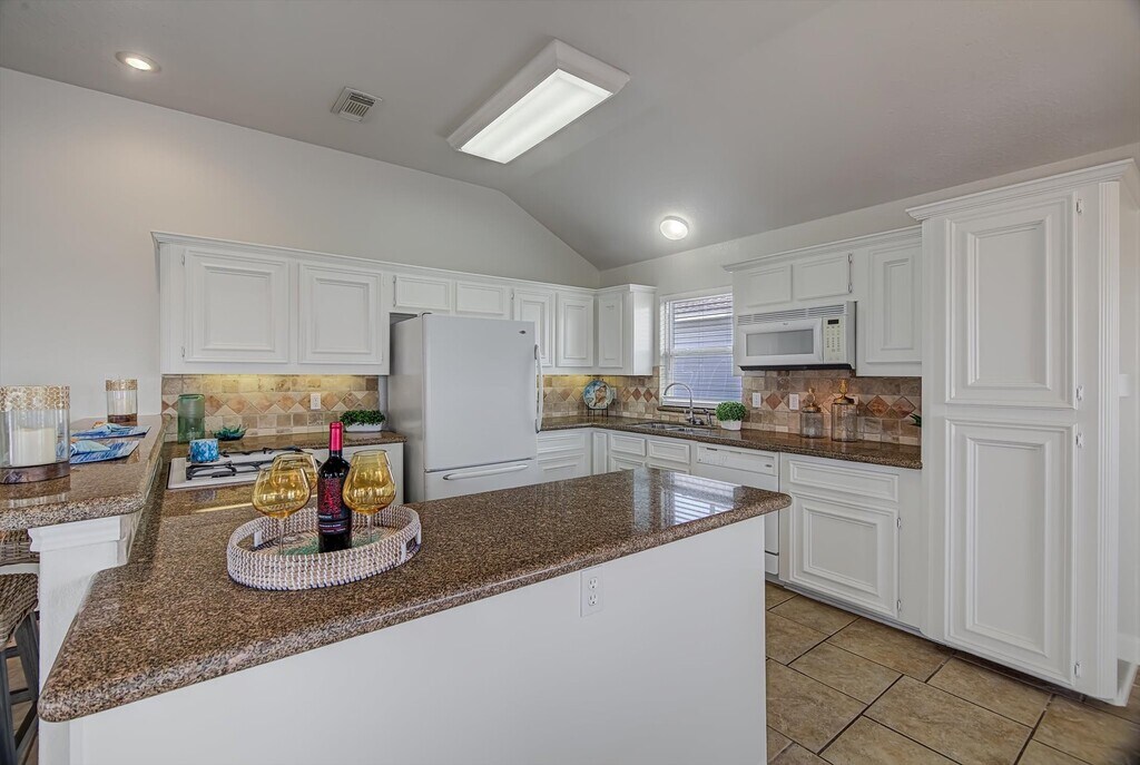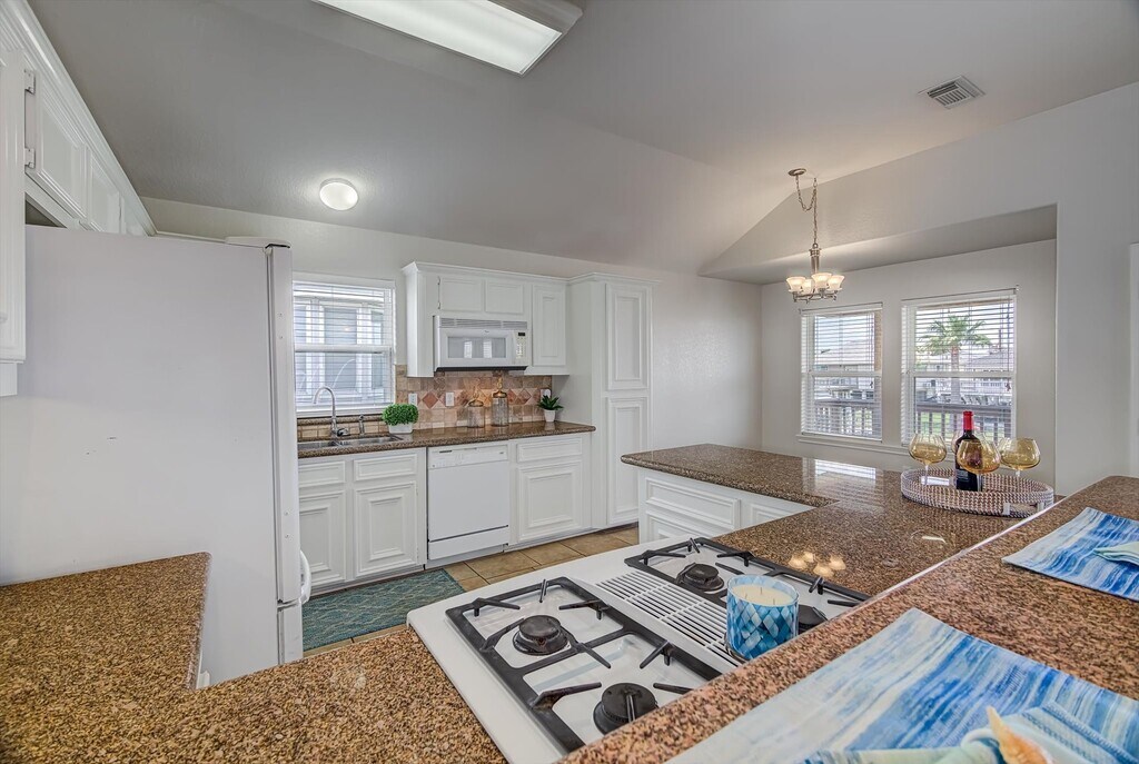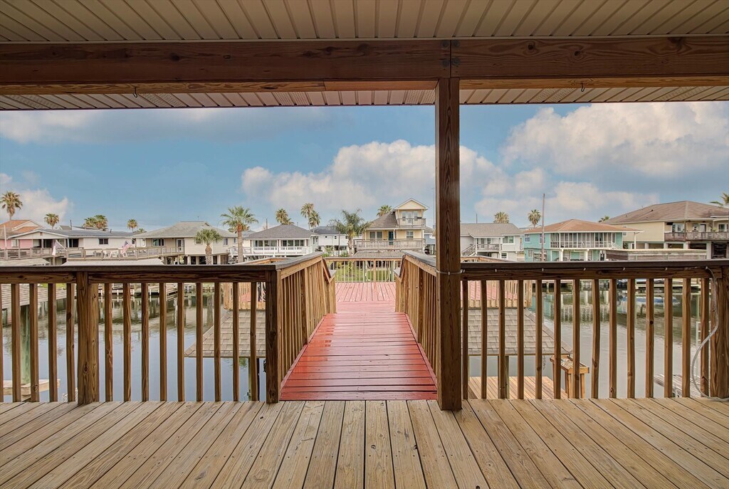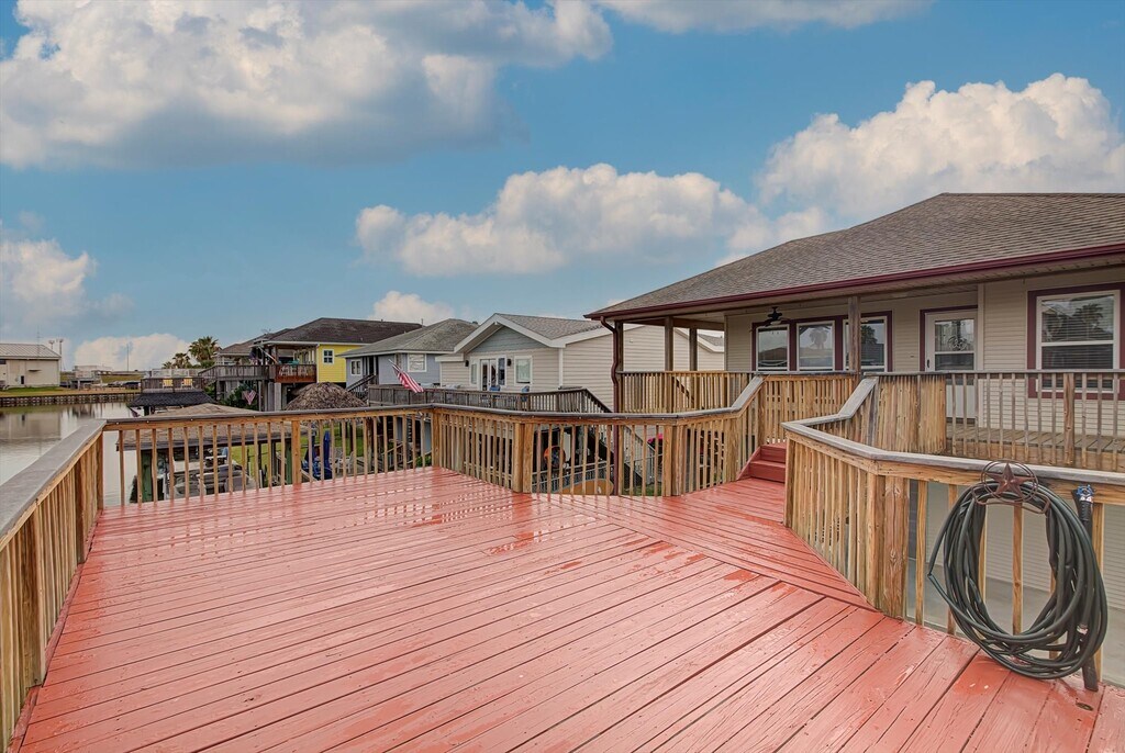 Coastal waterfront! Sought after 3 bedroom,2 bath up with extended upper covered deck and outer party deck. Enter a very open plan with extensive windows offering natural light and water views. Custom cabinets,granite counter tops,travertine backsplash,under cabinet lighting,breakfast bar,refrigerator stays. Entertain your guests from living,kitchen or dining areas at the bar. Living room with raised ceiling and recessed lighting,tile floors,bedrooms w/laminate flooring. Primary bedroom w/en suite,walk in closet. 2 seconday bedrooms. Utility up,washer/dryer remain. Oversized tandem garage,front for your car and the back for storage or workshop. Covered attached carport with wrap around patio for outdoor entertaining. Bring your boat,add to your slip! Fish,crab off your pier,fish cleaning station. Explore the world and possibilities of living on Bayou Vista waterfront! MLS# 75540215