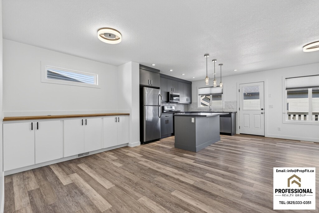 Bright 3BR + Office Main Floor w/ Ensuite, Huge Deck, Big Yard & Double Garage Main Floor - 7210 Cardinal Way SW Edmonton AB T6W 1V9 • Rent: $1998 + $300 Flat Rate Utilities (Power, Heat, Water) + $50 City of Edmonton's Garbage Collection • One small, well-behaved pet may be considered (subject to approval and a $50 monthly pet fee) • Double Garage INCLUDED! • 3 Beds, 2.5 bath • Credit, Reference and employment Check will be required with applications. Features: 1) Spacious 3 Bedrooms + Dedicated Office Den — Enjoy the flexibility of a private home office for remote work or a quiet study room for child/ren 2) 2.5 Bathrooms Including a Private Ensuite & Main-Floor Half Bath — Perfect for busy mornings and guests, offering both privacy and convenience. 3) Bright Open-Concept Living Area — Large windows fill the space with natural light and create an inviting atmosphere for family gatherings or entertaining. 4) Modern Kitchen w/ Full Appliances and Breakfast Bar — Equipped with stainless-steel fridge, stove, dishwasher, and microwave hood fan. Features ample cabinetry, tile backsplash, and durable countertops for easy meal prep and clean-up. 5) Private Deck, Big Yard & Outdoor Space — Enjoy a huge deck for BBQs, morning coffee, or relaxing evenings, plus a spacious yard ideal for child/ren, pets, or gardening. RV parking available for added convenience. 6) Upstairs Laundry Room — Convenient second-floor laundry with washer and dryer plus linen storage. 7) Ample Closets & Storage — Includes a coat closet at the foyer, hallway closets, linen closet upstairs, and a walk-in closet in the primary bedroom. 8) Flooring Throughout: Luxury vinyl plank on the main level for easy cleaning and carpet on stairs and bedrooms for comfort. 9) Double Garage Included — Secure, weather-protected parking and extra storage space. 10) Energy-Efficient Home — Modern insulation and heating help keep utility costs low and temperatures comfortable year-round. 11) 7x7 storage shed included — perfect for extra storage. Offered by PropFit Property Management - a professional property management group licensed under the Professional Realty Group. *Advertised price reflects the discount rate for a tenant paying on or before the 1st of the month, subject to lease rules and regulations. Any overages beyond the flat-rate utilities budget will be shared among tenants.