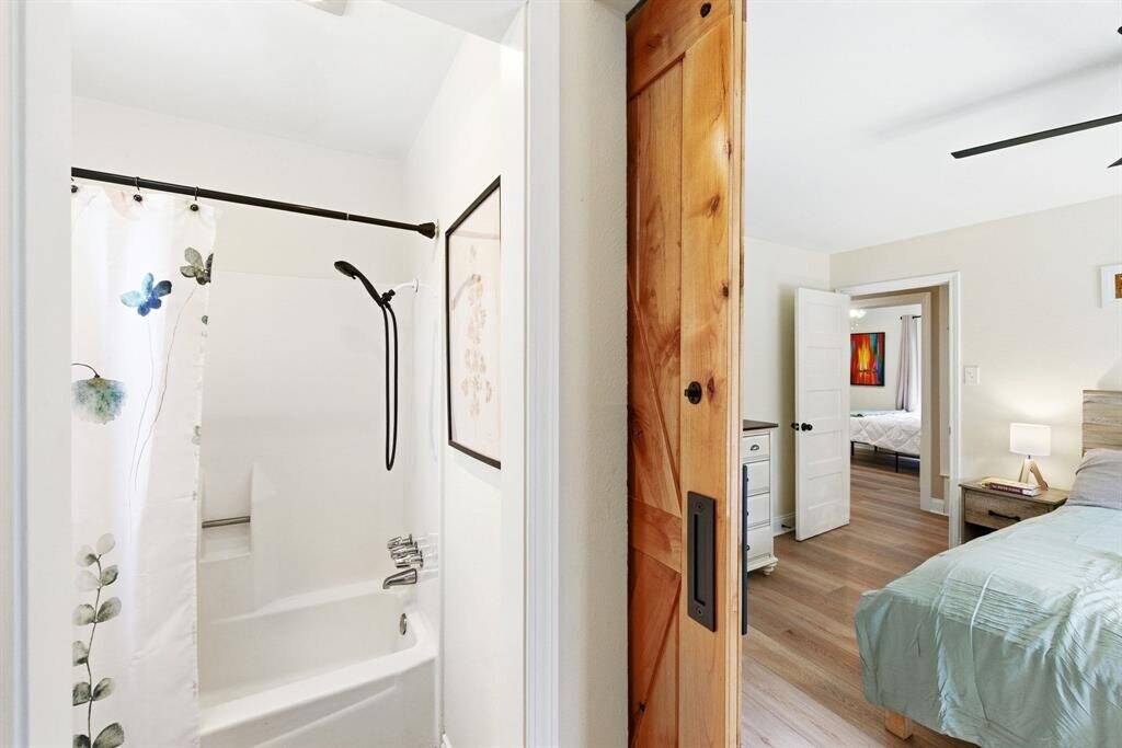 Updated and move-in ready, this South Austin home in Whispering Oaks offers standout indoor-outdoor living with an updated and well maintained in-ground pool—monthly pool maintenance included in the lease! Set on a large corner lot under mature oak trees, the home features a fully fenced front yard with wrought iron fencing and a private backyard designed for everyday enjoyment. The outdoor space includes a wrap-around pool, expansive deck, and multiple areas for dining and lounging, all secured by a safety fence, plus covered porch and deck spaces overlooking the pool. Inside, the home has been thoughtfully updated with modern finishes throughout. The open kitchen stainless steel appliances, granite countertops, and a large center island with seating, opening to bright, connected living and dining areas with vaulted, beamed ceilings. French doors lead to a sunroom and flexible secondary bedroom space. The primary suite includes direct backyard access, a walk-in closet, and a private bath, while two additional bedrooms provide flexibility for guests, office, or additional living space. Located in the heart of South Austin’s ’45, this established neighborhood is known for its tree-lined streets, sidewalks, and easy access to Stephenson Nature Preserve and Longview Park—offering miles of trails, green space, playgrounds, and a sports court just minutes away. Nearby retail and dining options are abundant, with quick access to Mopac and I-35 and an easy commute to Downtown Austin. A well-cared-for home with a true backyard retreat in one of South Austin’s most accessible and established neighborhoods. MLS ID 6685293